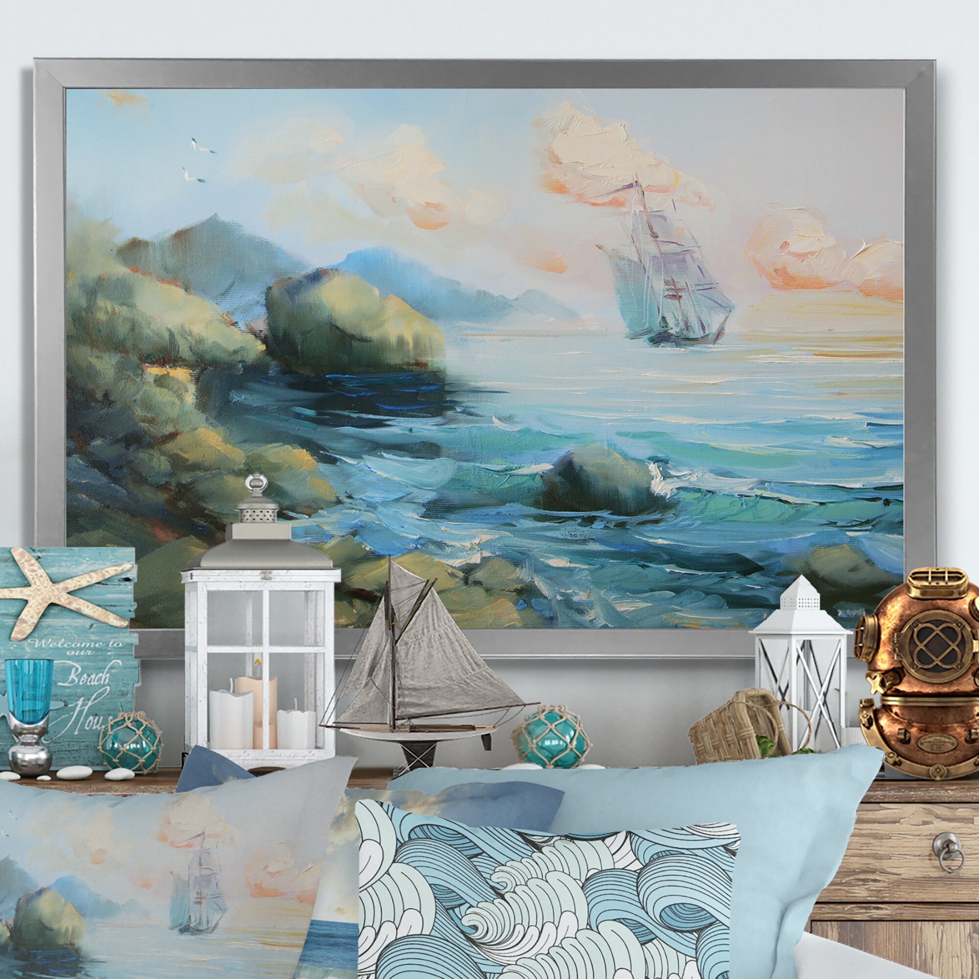 Designart "Italy Coast Sea Painting" Nautical & Coastal Framed artwork