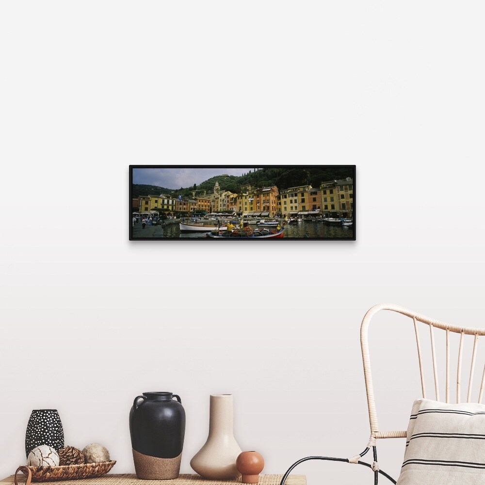 "Harbor Portofino Italy" Black Float Frame Canvas Art