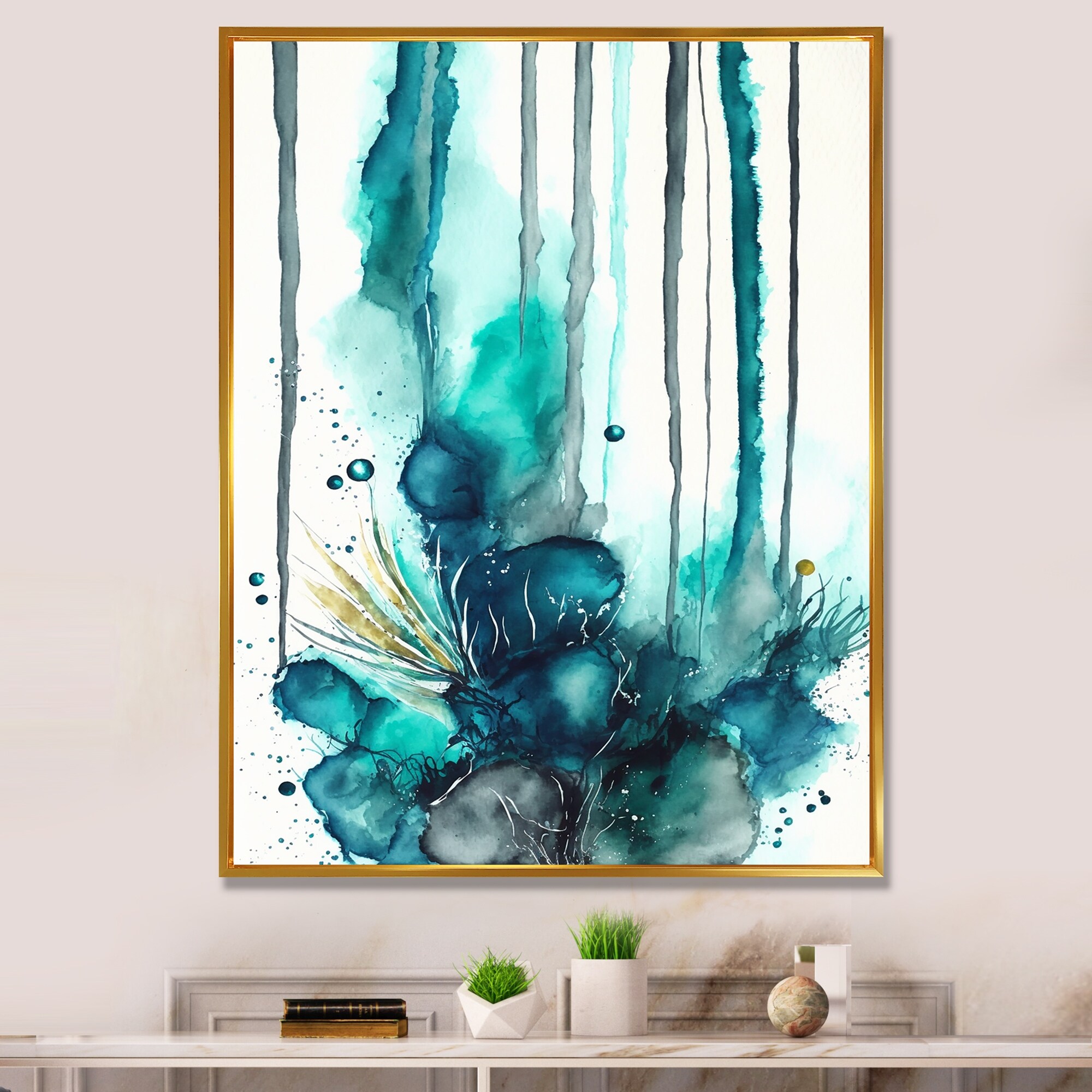 Designart "Tropical Turquoise Joyfulness V" Abstract Liquid Ink Framed Canvas Wall Art Print