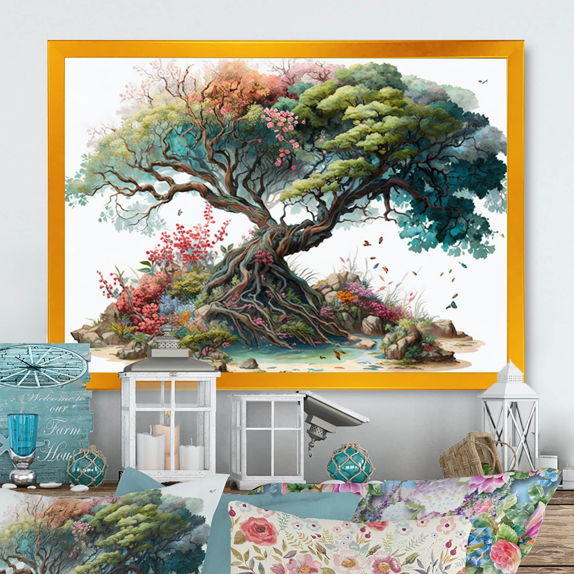 Designart "Tree At the Center of Jungle Paradise V" Tree Framed Art Print