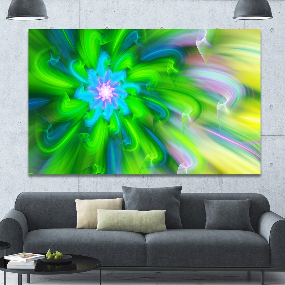 Designart "Dance of Green Flower Petals" Extra Large Floral Wall Art on Canvas
