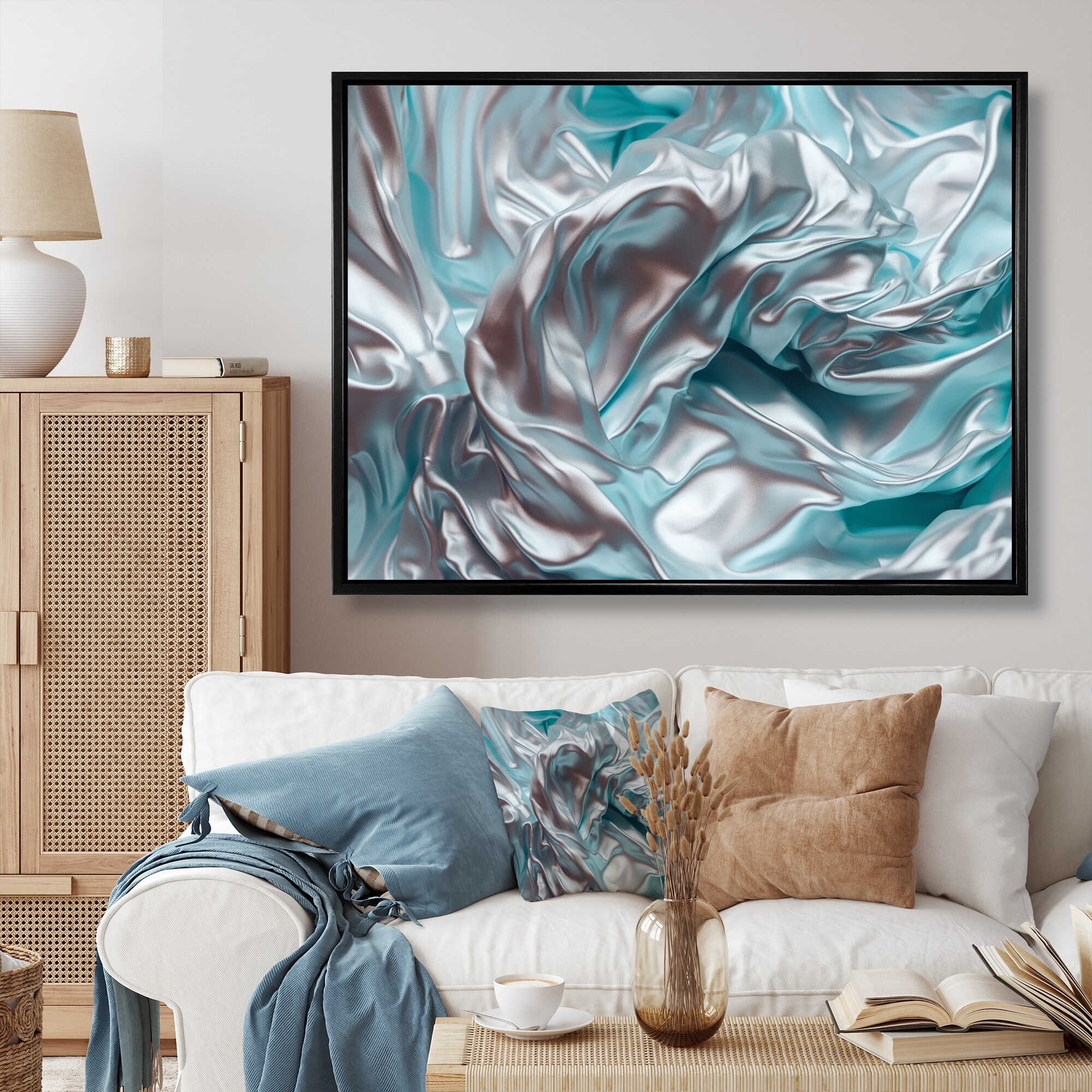 Designart "Silver Blue Dancing Colors" Abstract Marble Framed Wall Art for Living Room
