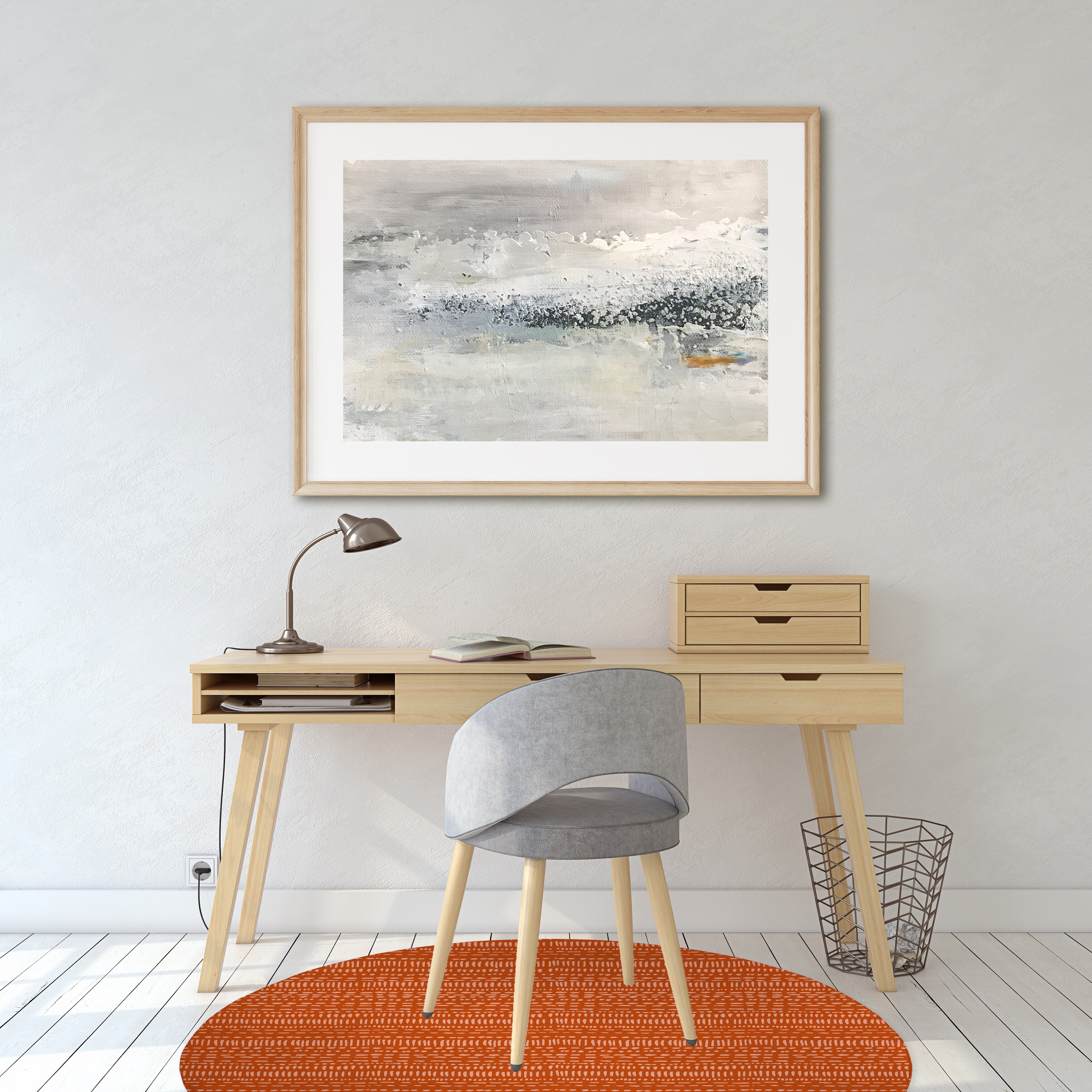 Designart "Orange Blue Dancing Colors Iii" Minimalism Framed Wall Decor