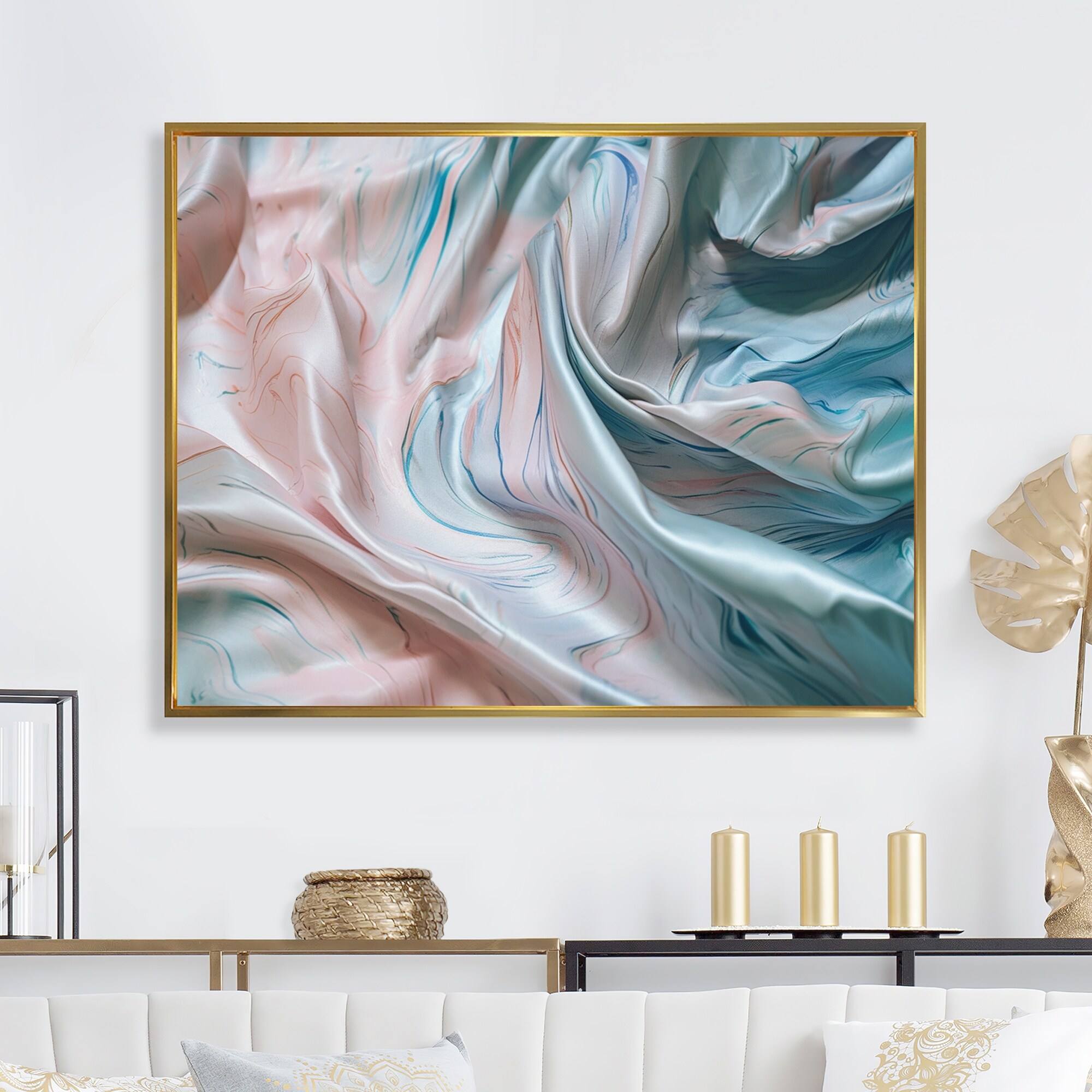 Designart "Pink Blue Dancing Colors Ii" Abstract Marble Framed Canvas Prints