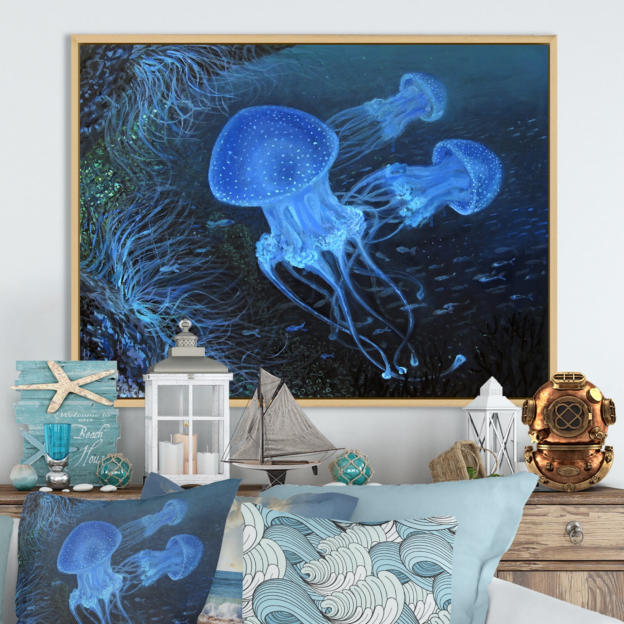 Designart "Dance Under Water" Nautical & Coastal Framed Canvas artwork