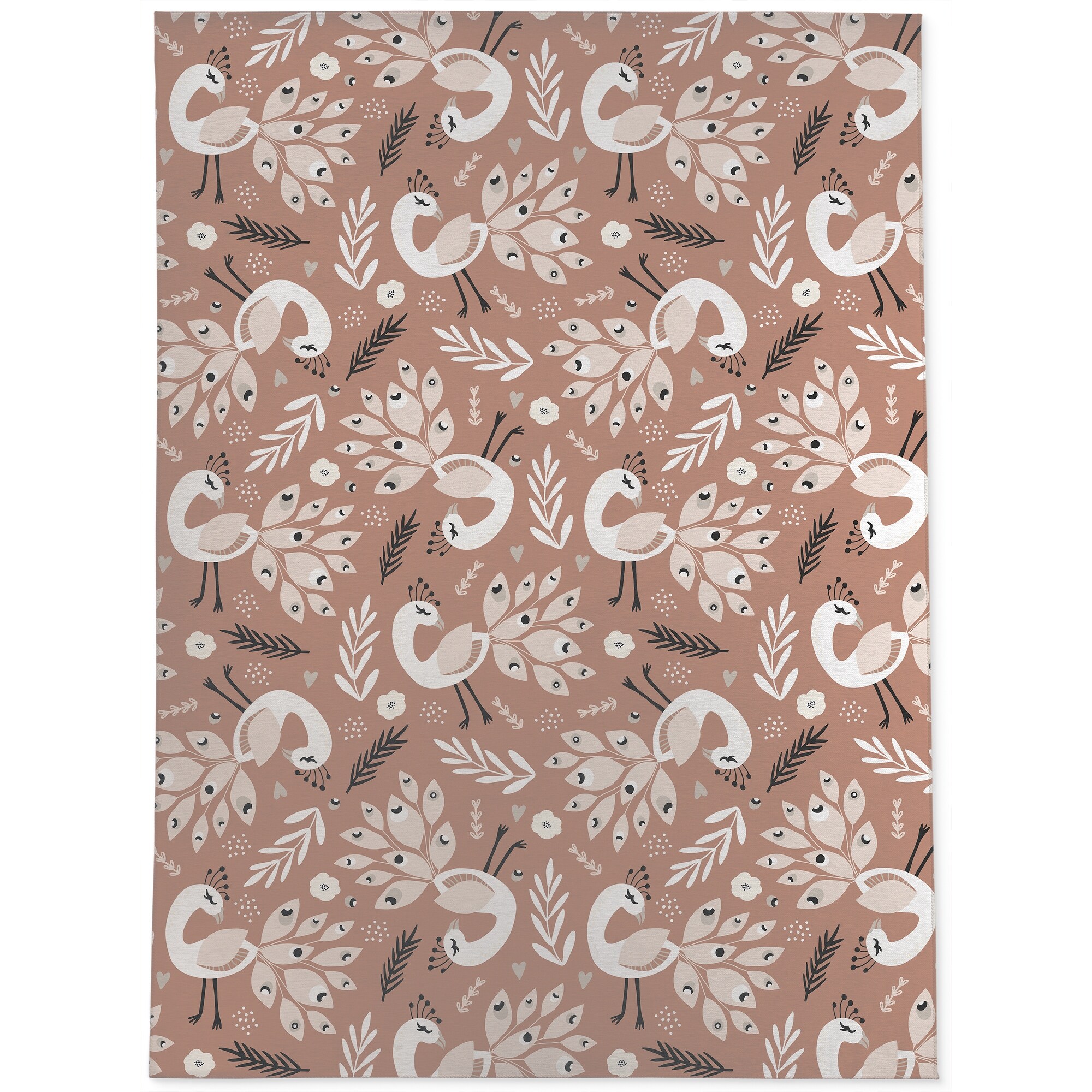 DANCING PEACOCKS in RUST Outdoor Rug By Terri Ellis