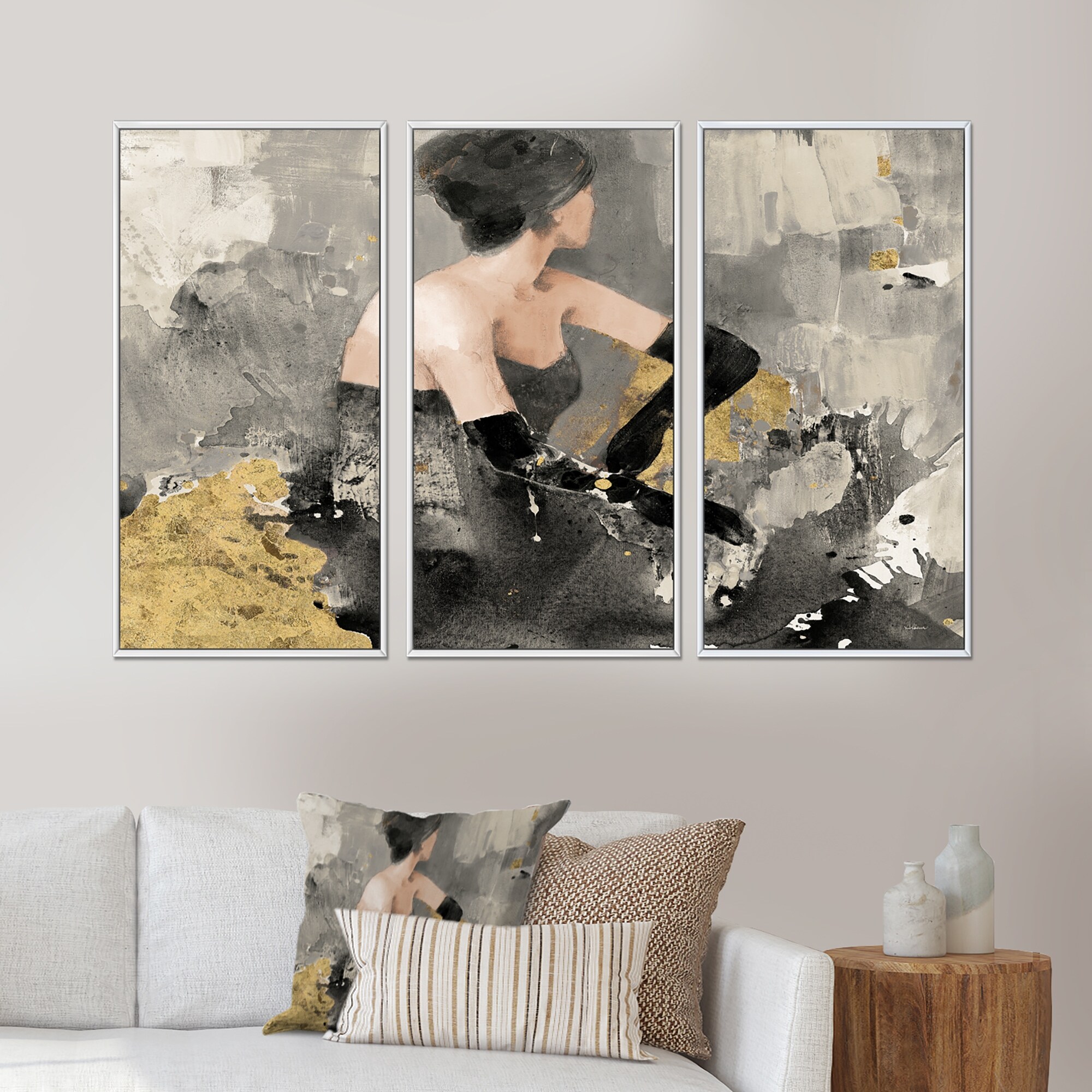 Designart "Gold Fashion Dance" Traditional Framed Artwork Set of 3 - 4 Colors of Frames