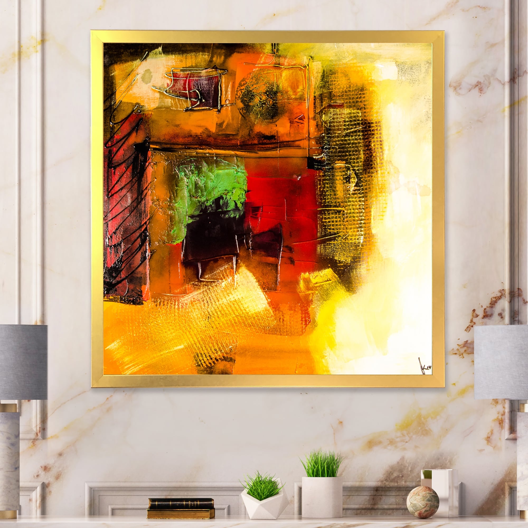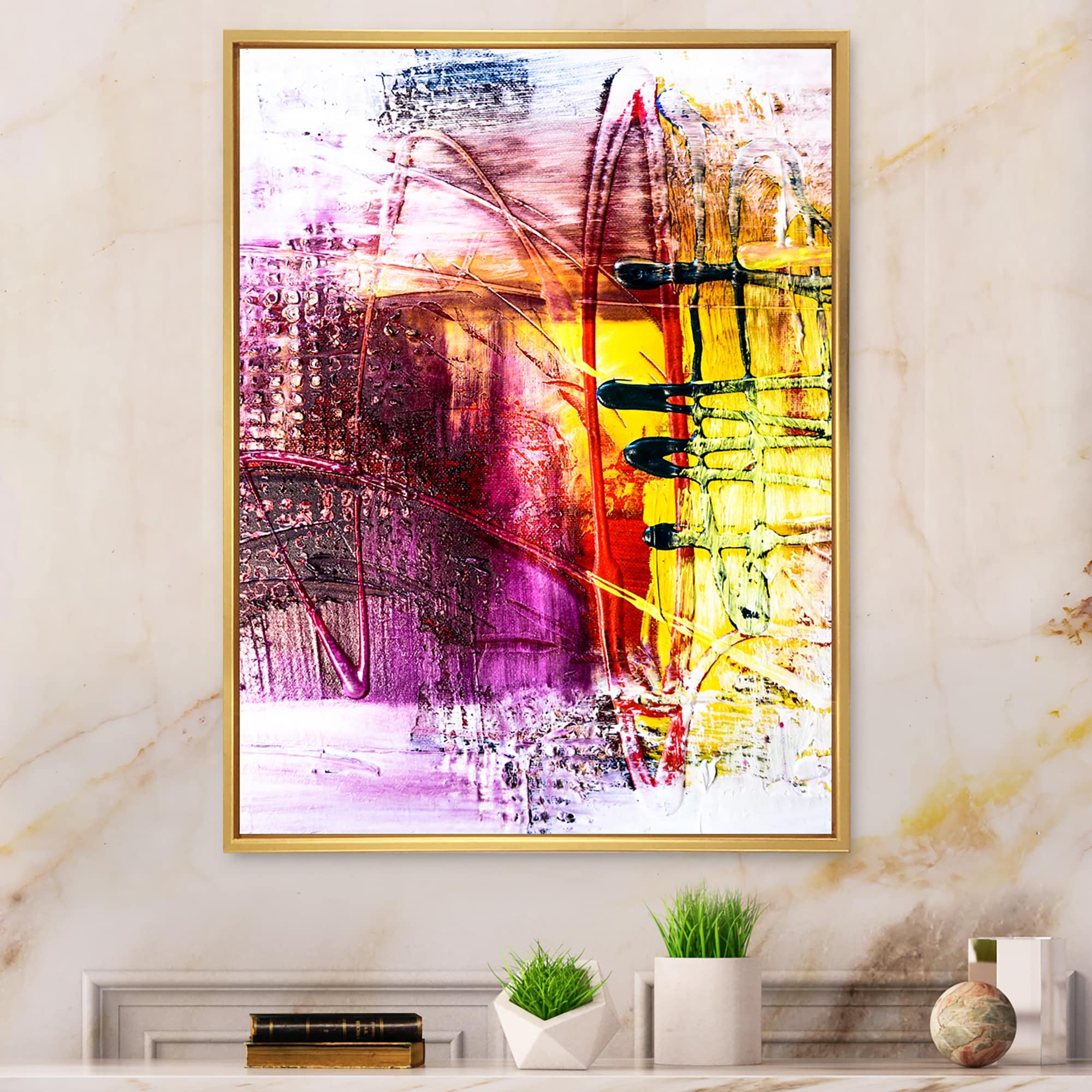 Designart "Abstract Energetic Color Dance II" Modern Framed artwork