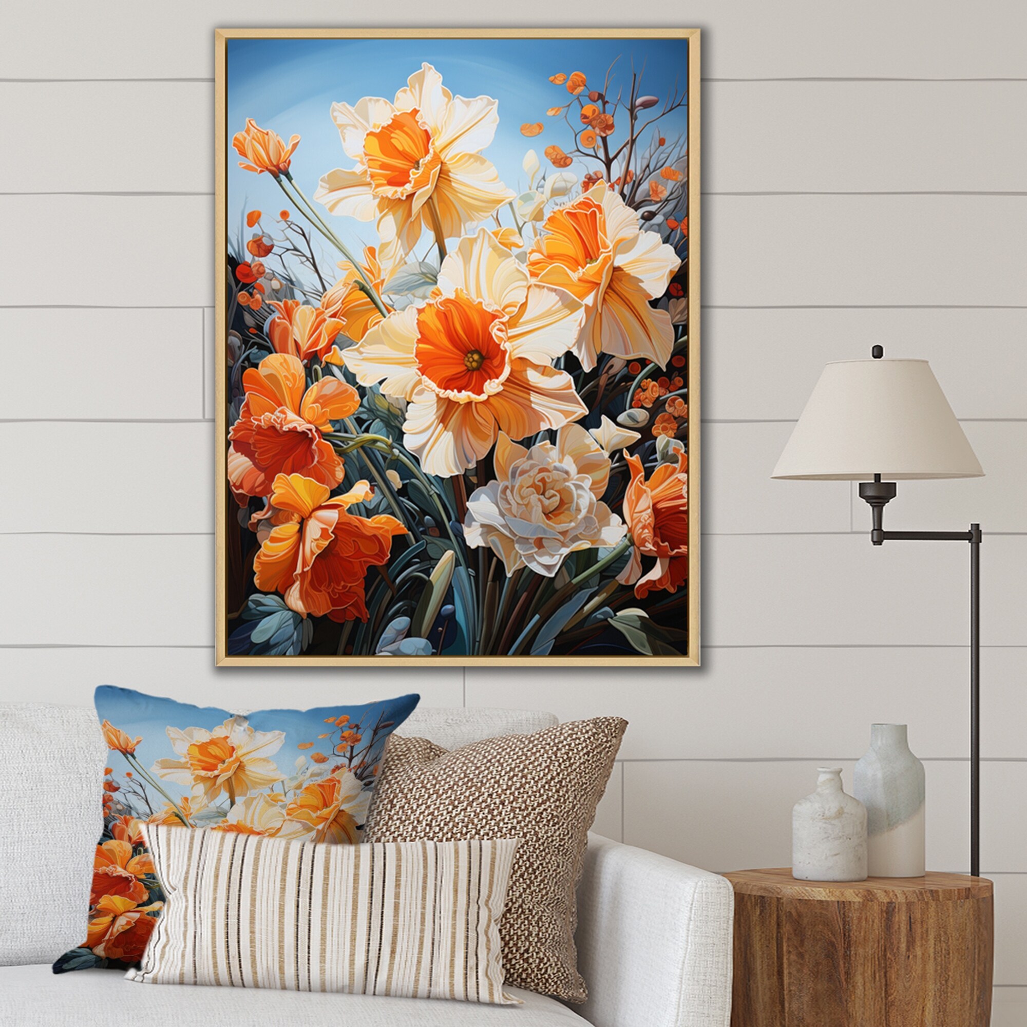 Designart "Daffodils Field Dance III" Daffodils Framed Canvas Art Print