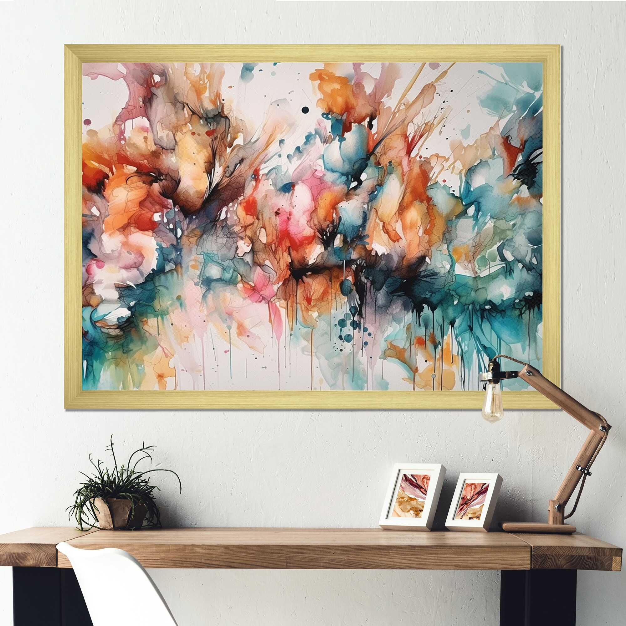 Designart "Orange Blue Dancing Colors Ii" Minimalism Framed Wall Decor