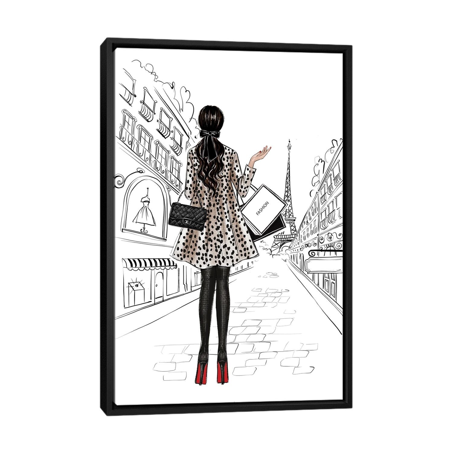 iCanvas "Shopping In Paris Brunette Girl" by LaLana Arts Framed Canvas Print