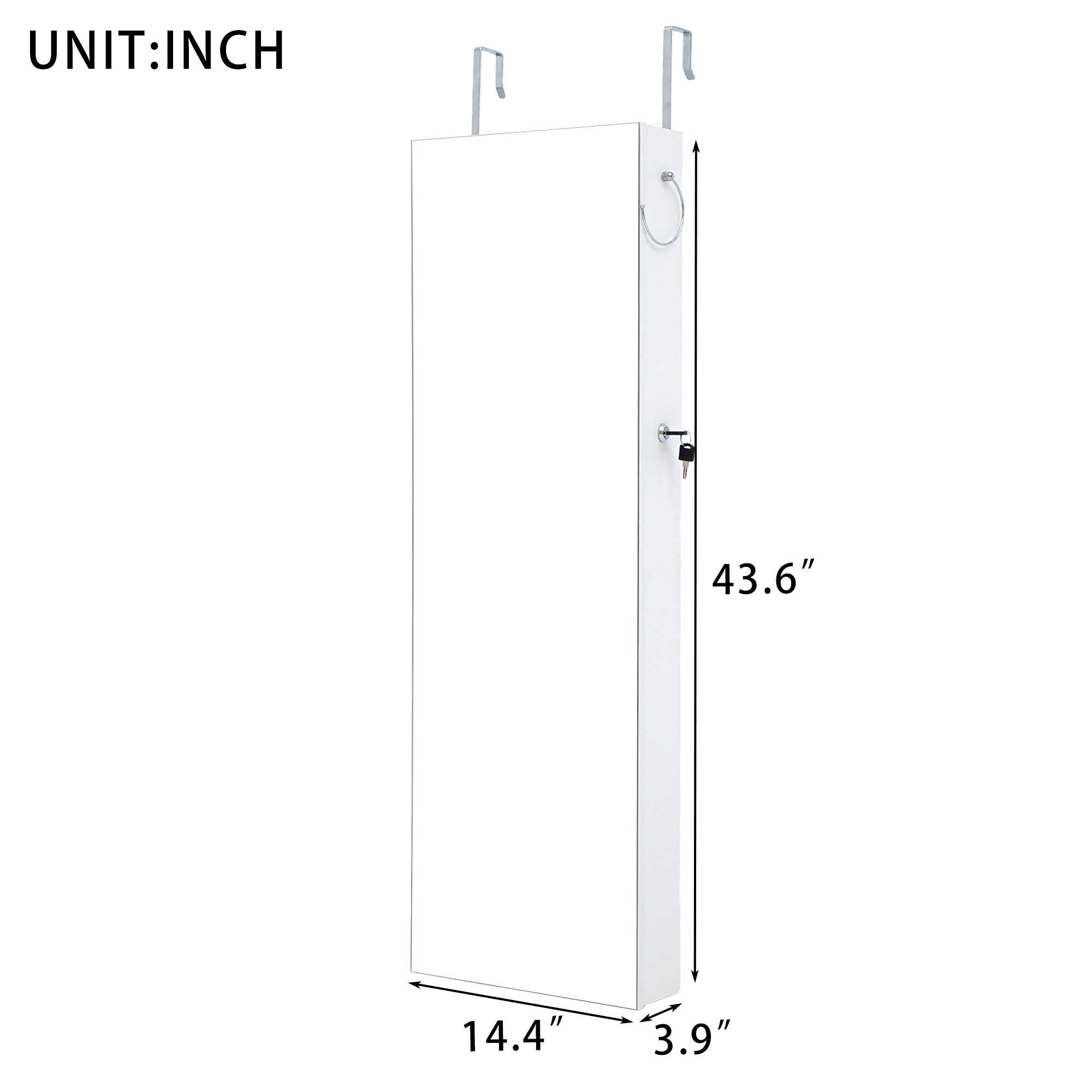 Lockable Wall Door Mounted Mirror Jewelry Cabinet with LED Lights - 14.5" x 3.3" x 53.5" (L x W x H)
