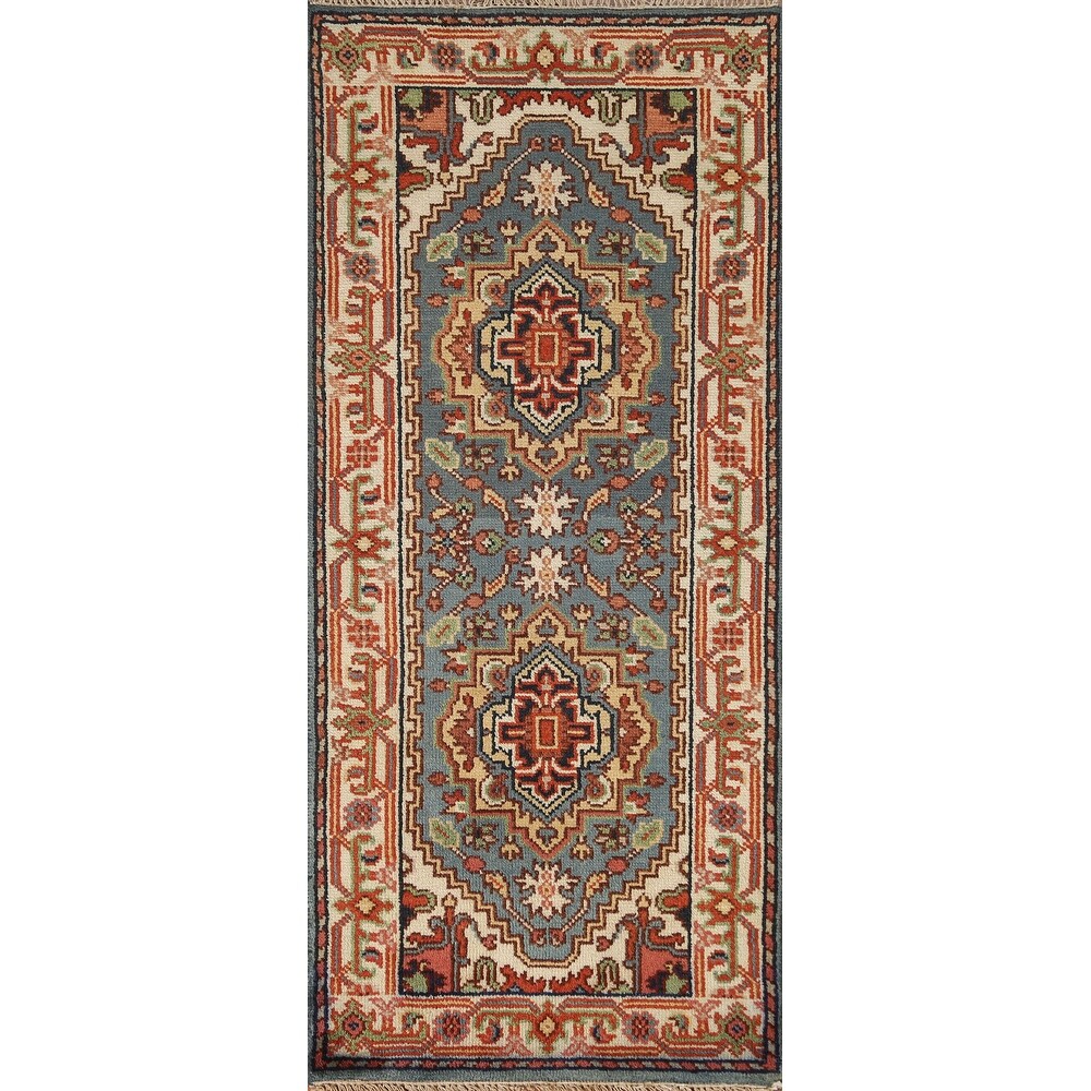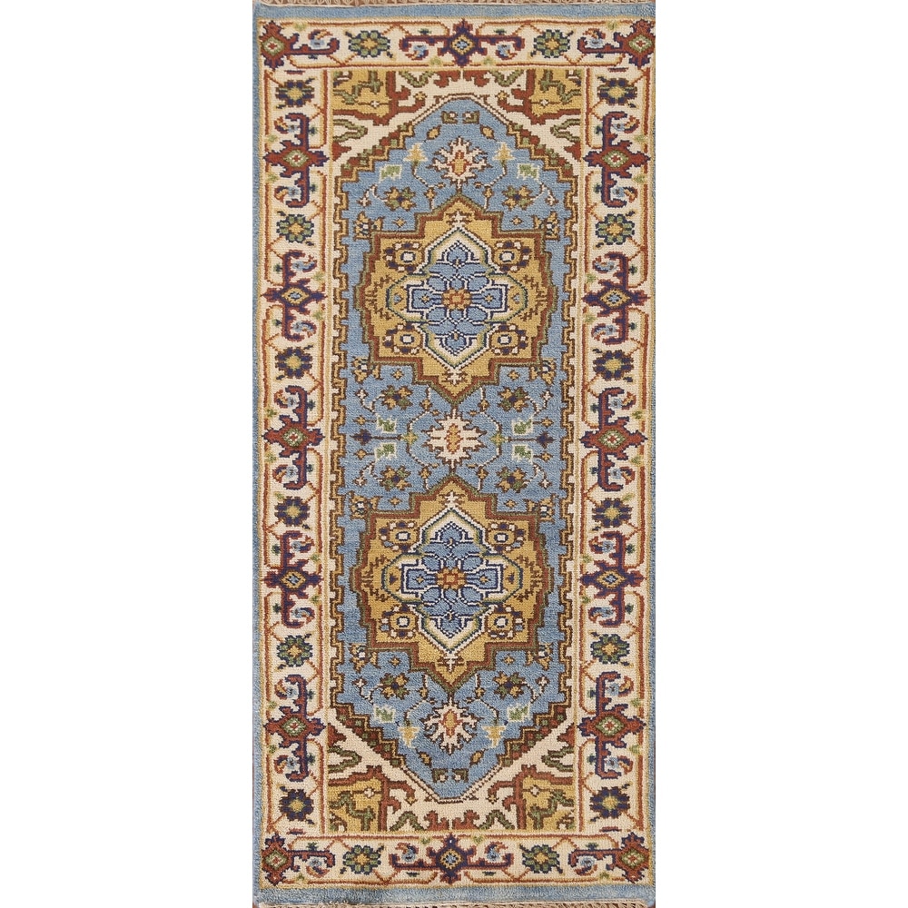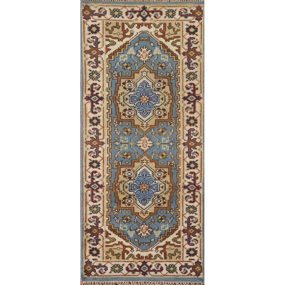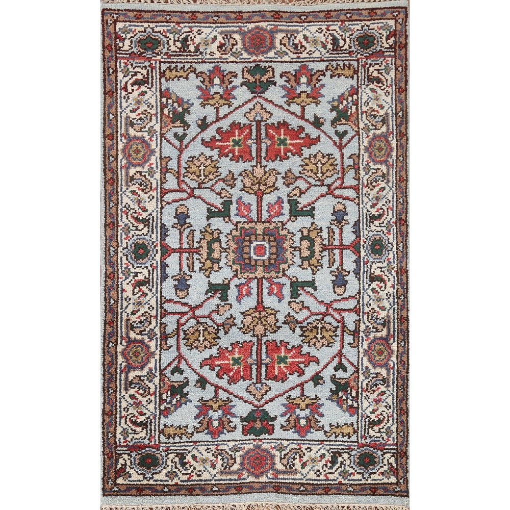 Light Blue Heriz Serapi Indian Accent Rug Handmade Wool Carpet - 2'11"x 4'11"