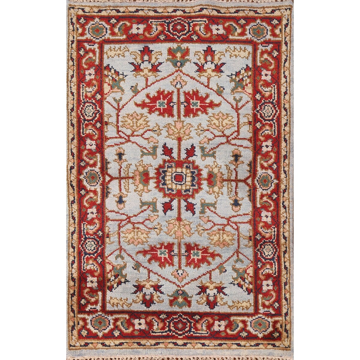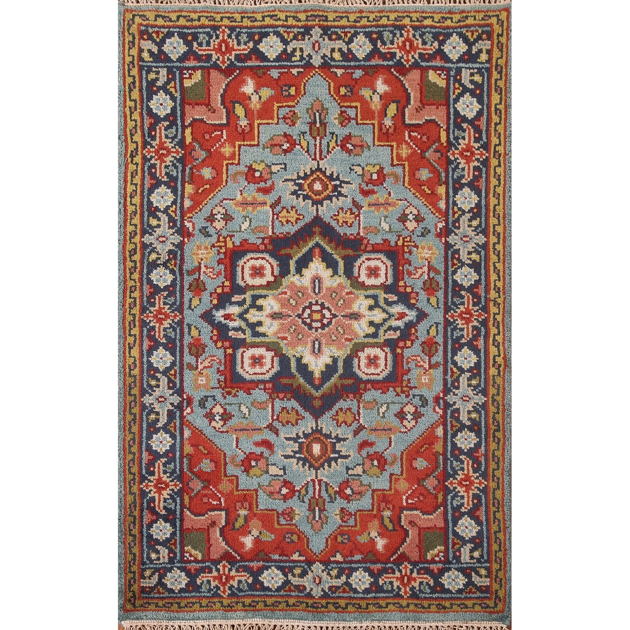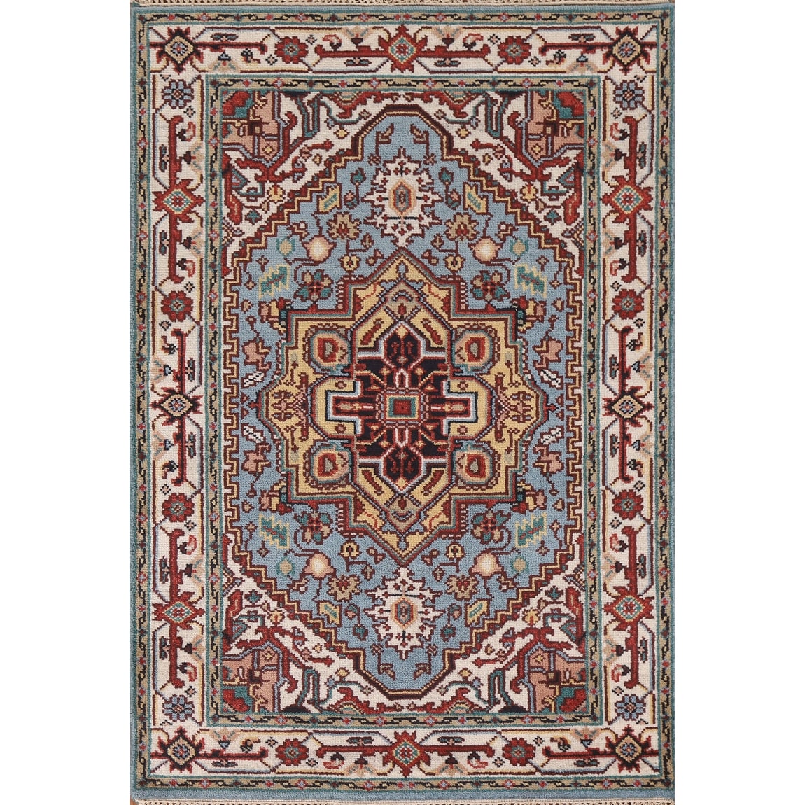 Light Blue Heriz Serapi Indian Accent Rug Handmade Wool Carpet - 2'11"x 4'11"