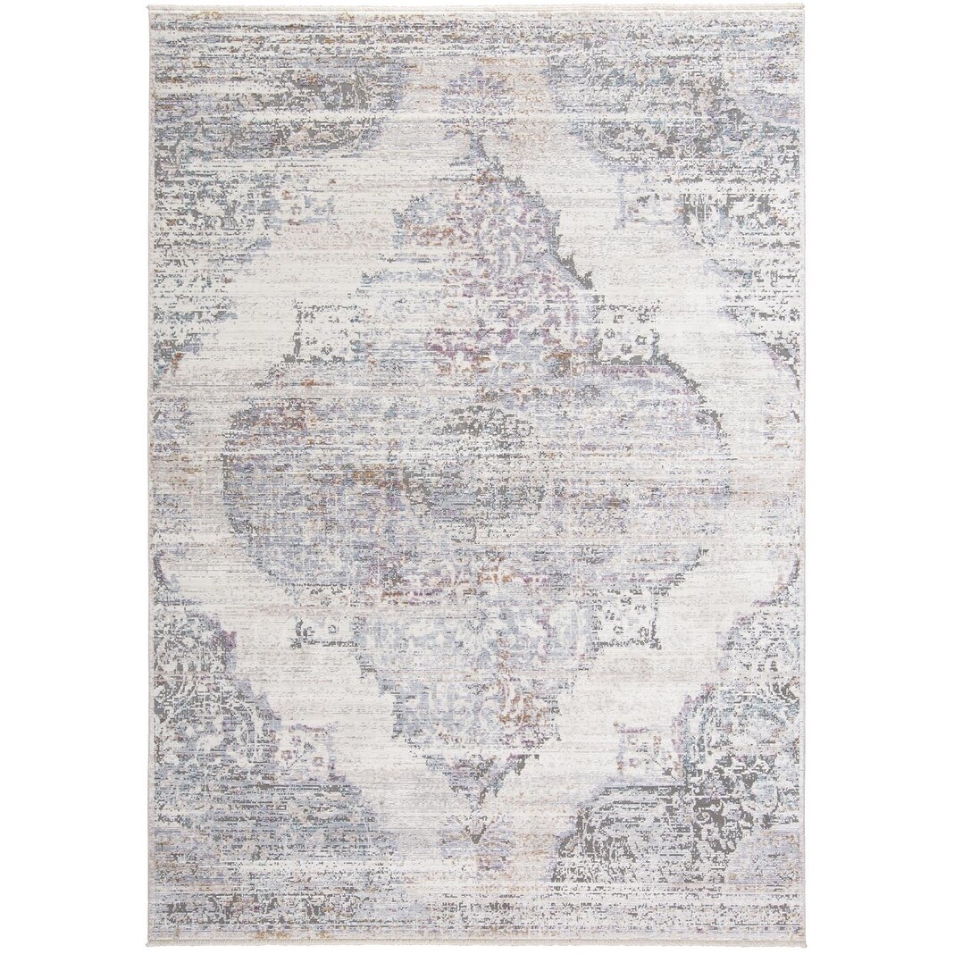 Tirza Luxury Distressed Medallion Rug, Ivory/Light Blue, Area Rug