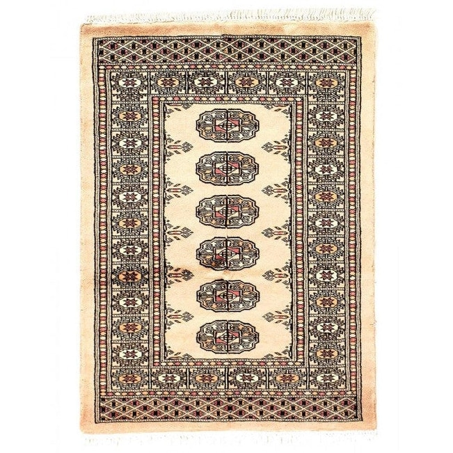 Canvello Fine Hand Knotted Bokhara Rug - 2"1'X 3" - light blue