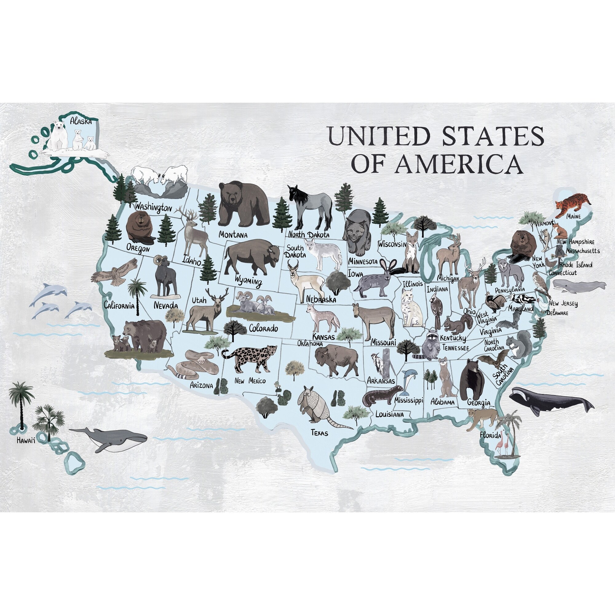 'Light Blue US Map' Painting Print on Wrapped Canvas