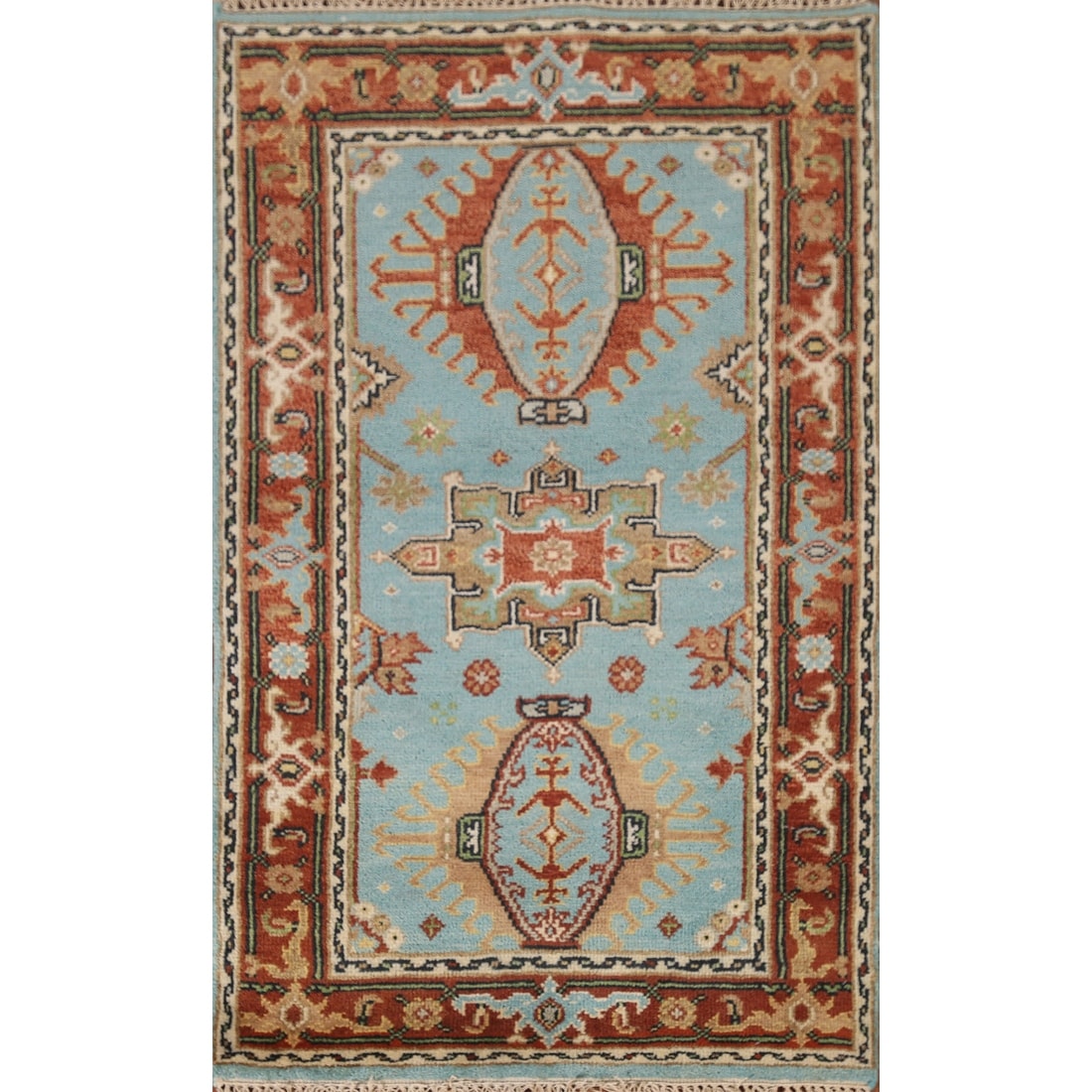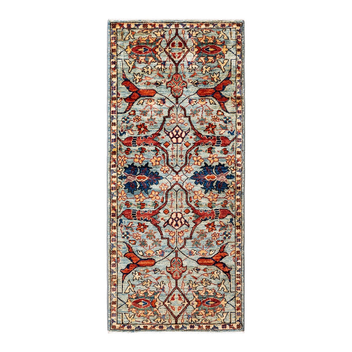 Hand Knotted Traditional Tribal Wool Light Blue Area Rug - 2' 1" x 4' 9"