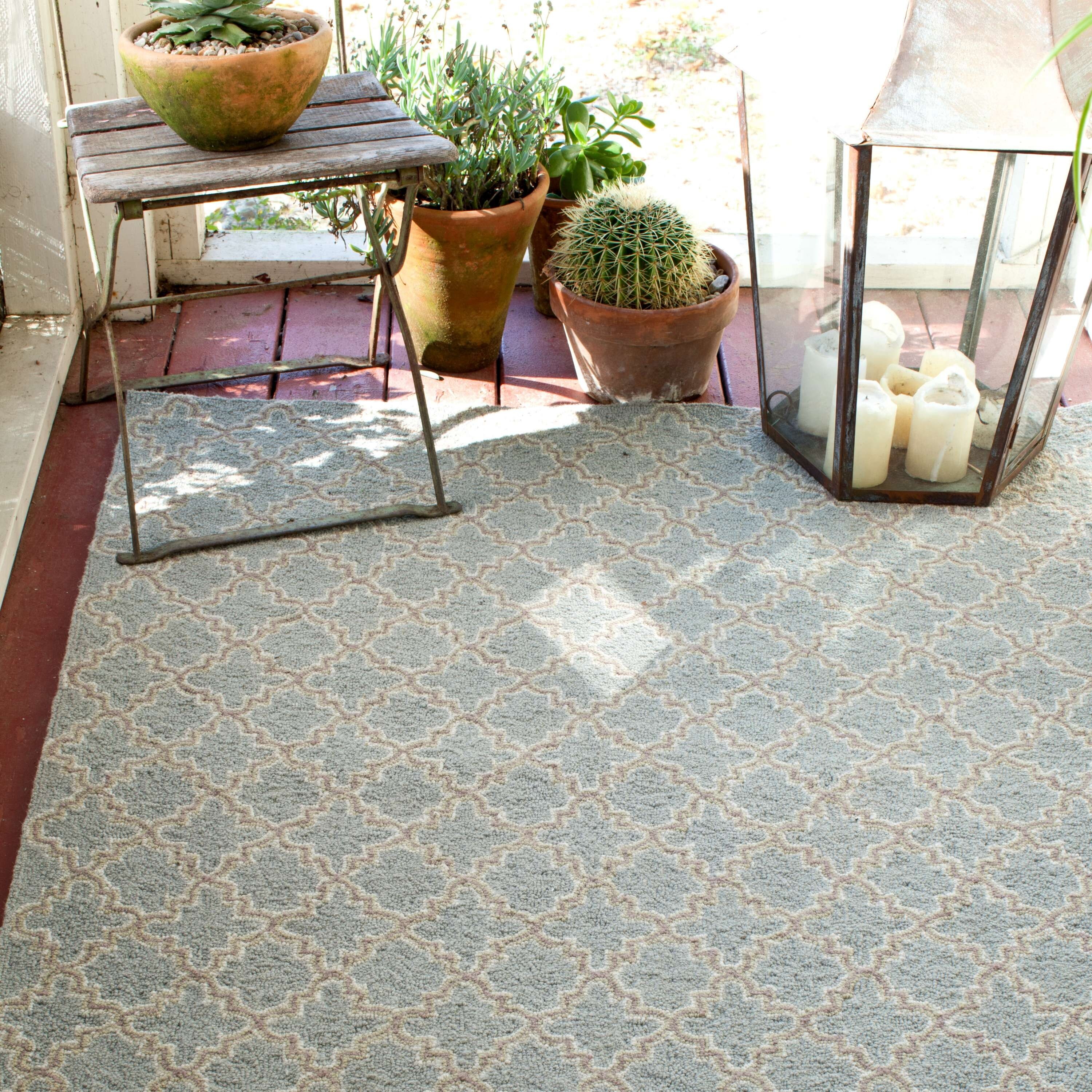 Light Blue Tile Micro Hooked Wool Rug