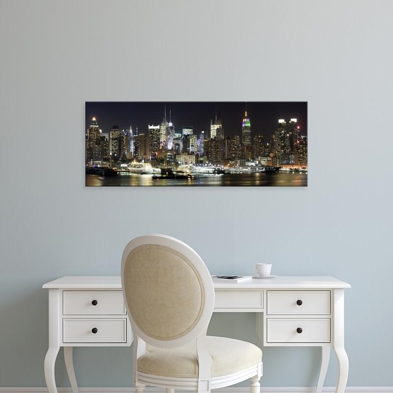 Easy Art Prints Panoramic Image 'Buildings in a city lit up, Hudson River, Midtown Manhattan, New York City' Canvas Art