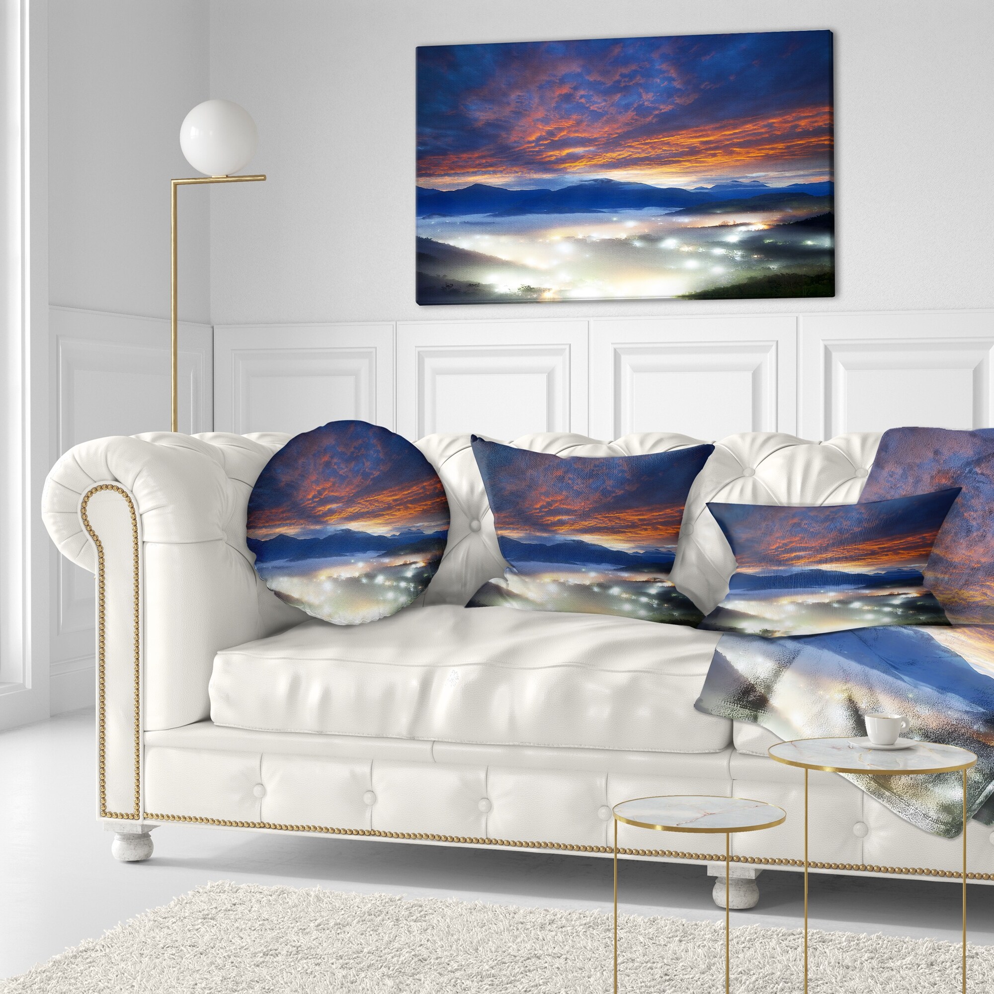 Designart "Fiery Clouds and Lit up Villages" Landscape Photo Canvas Art Print