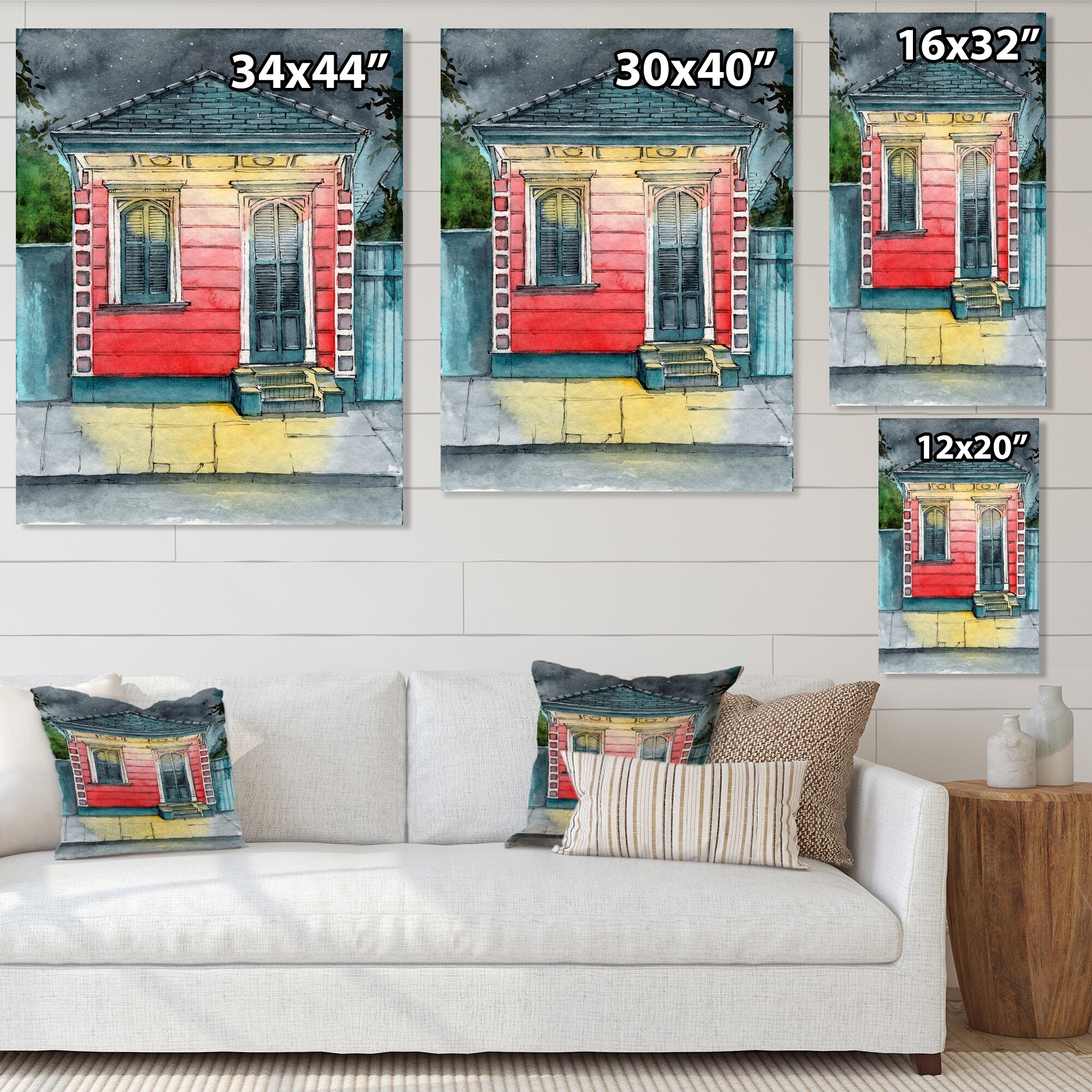 Designart "Small Red Clapboard House Lit By Lighted Lanterns" Bohemian & Eclectic Canvas Wall Art Print