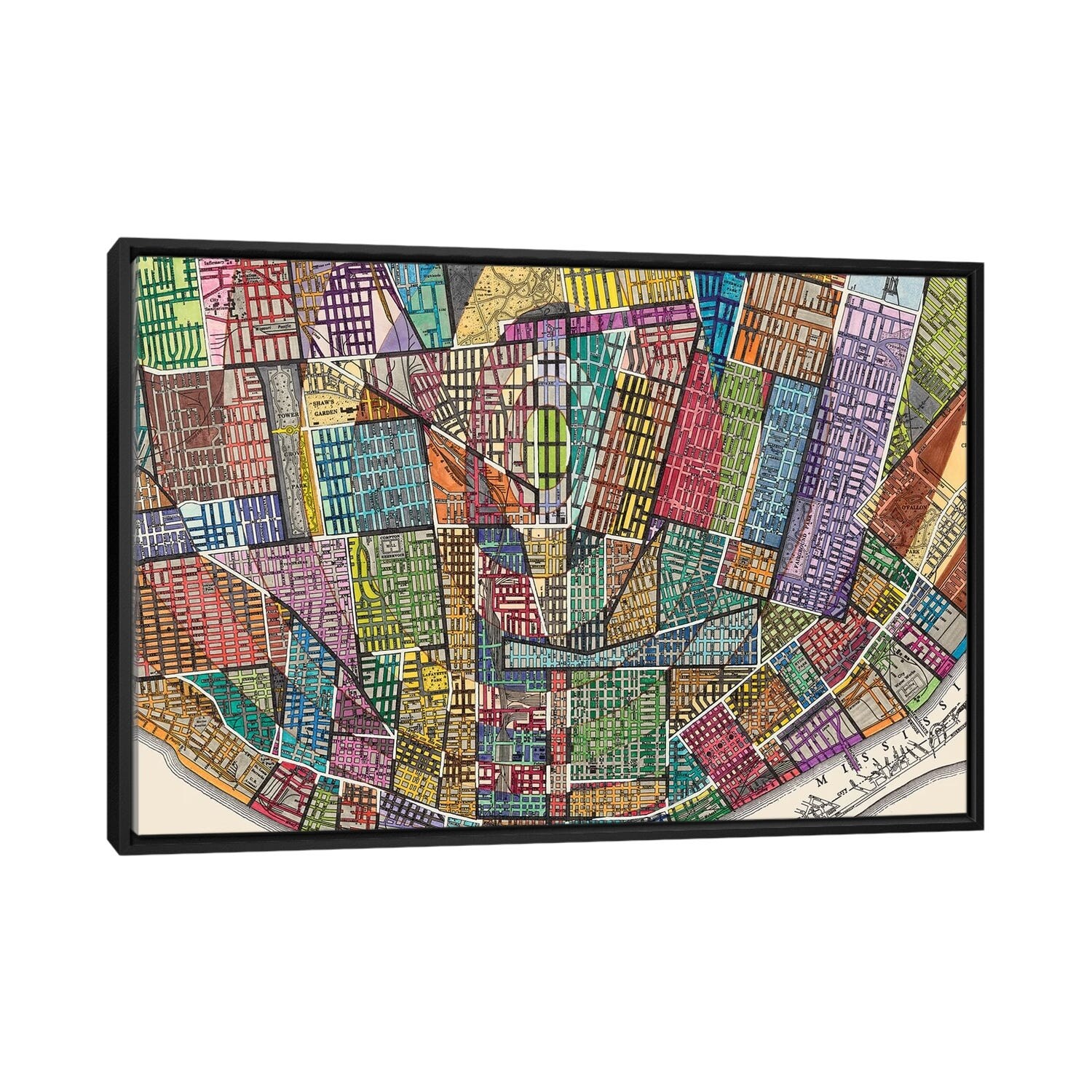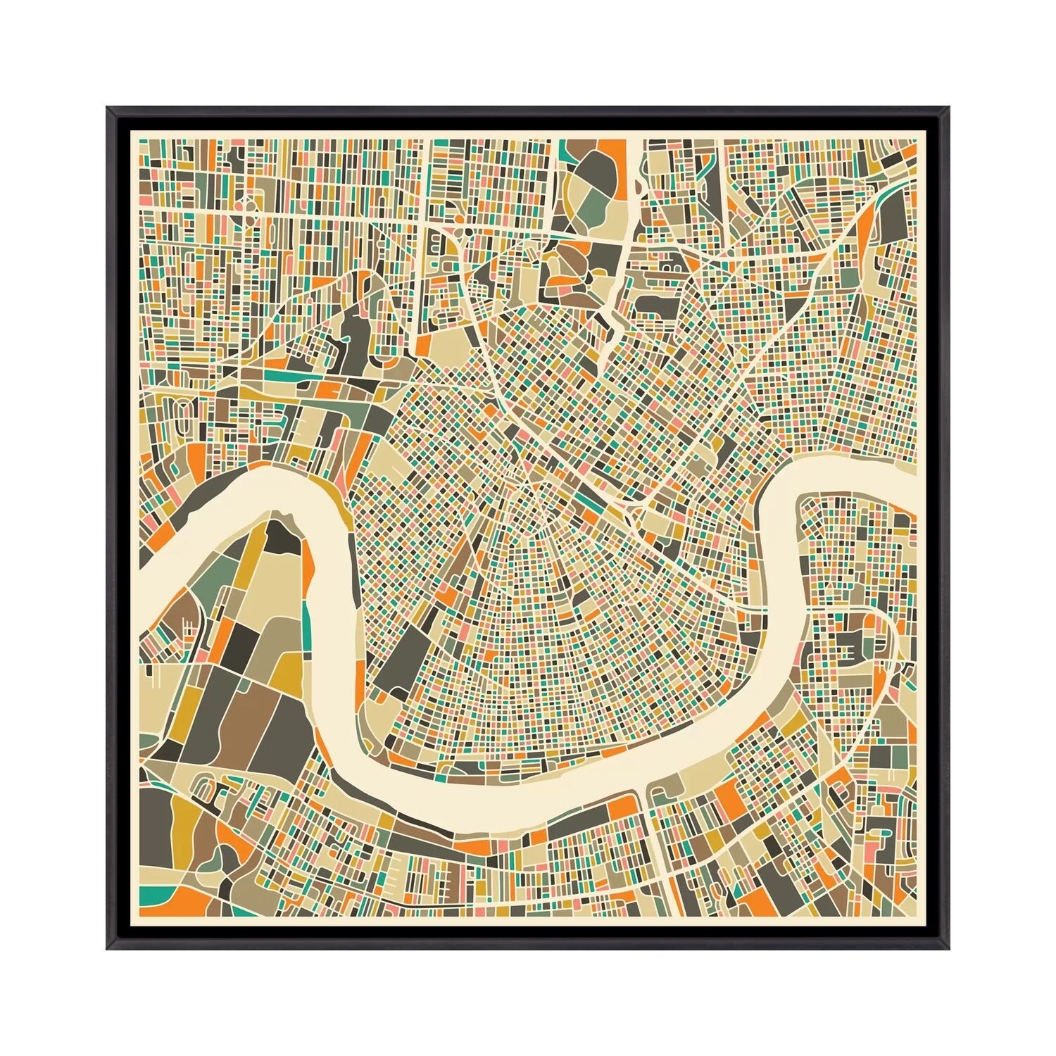 iCanvas "Abstract City Map of New Orleans" by Jazzberry Blue Framed