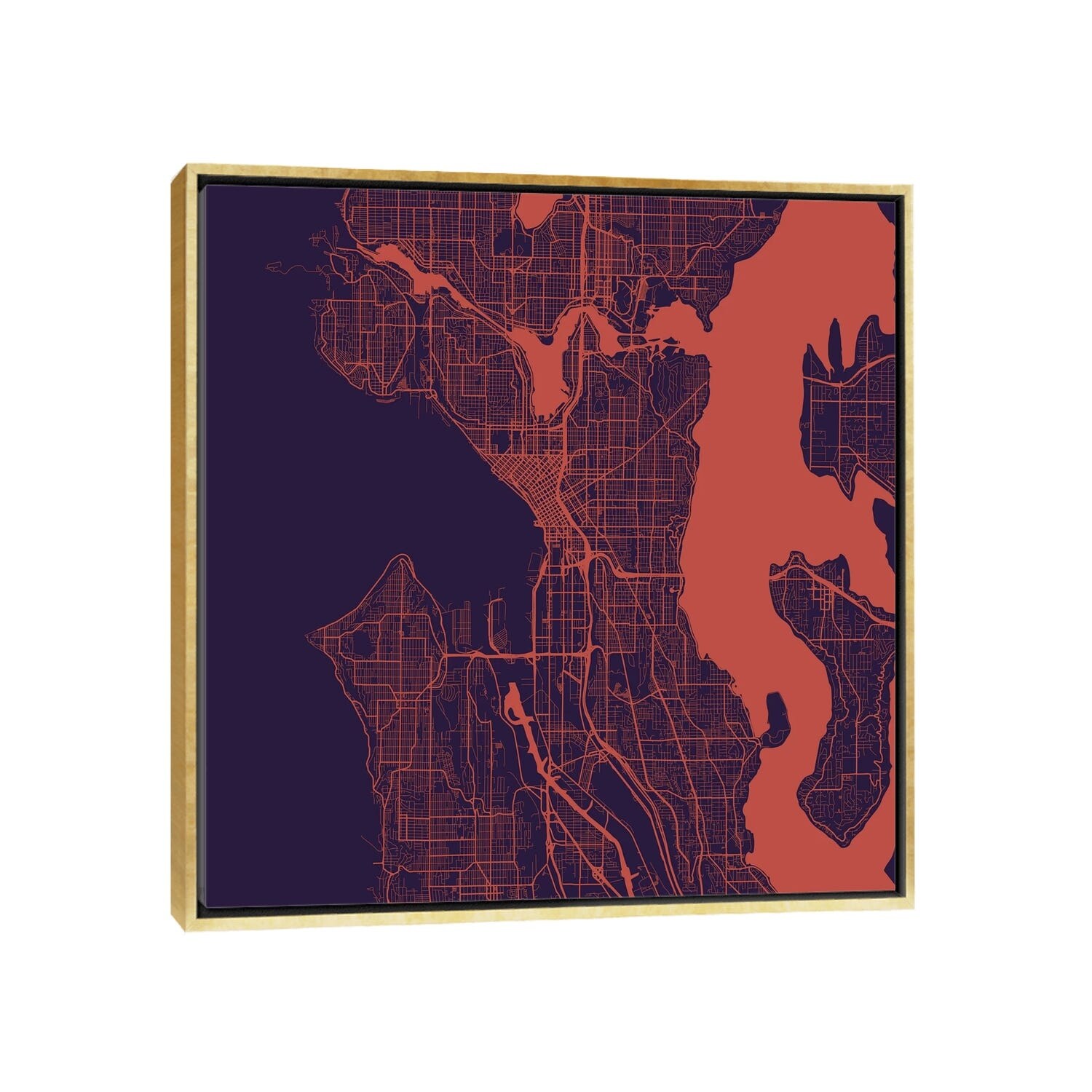 iCanvas "Seattle Urban Roadway Map (Purple Night)" by Urbanmap Framed Canvas Print