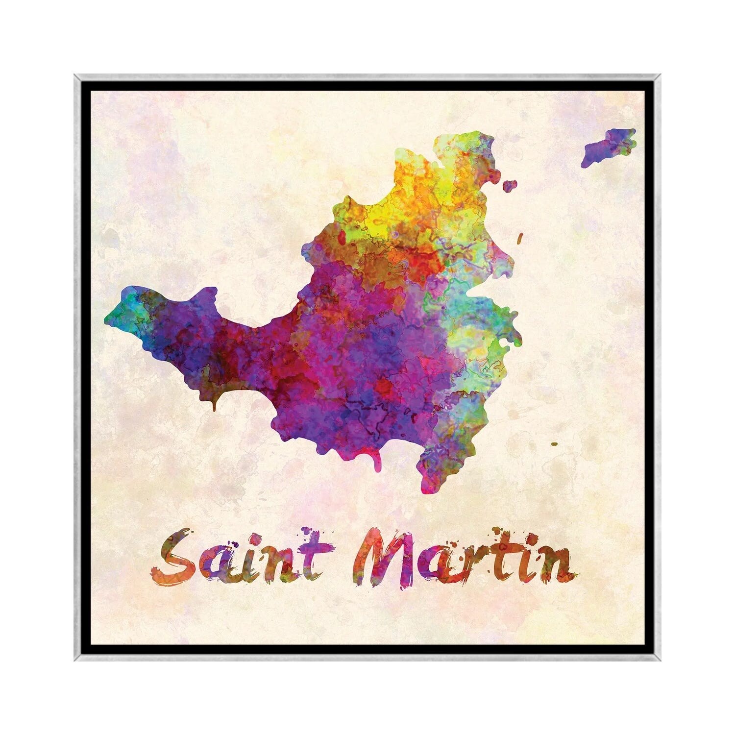 iCanvas "Saint Martin Map in Watercolor" by Paul Rommer Framed