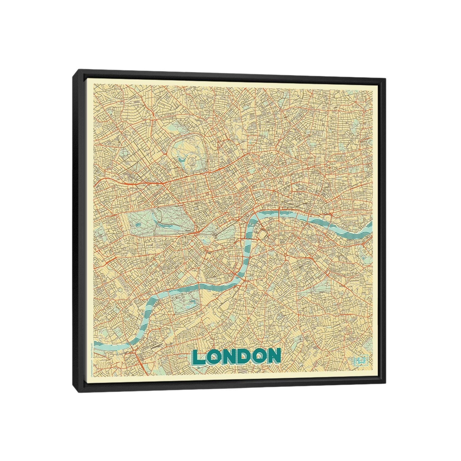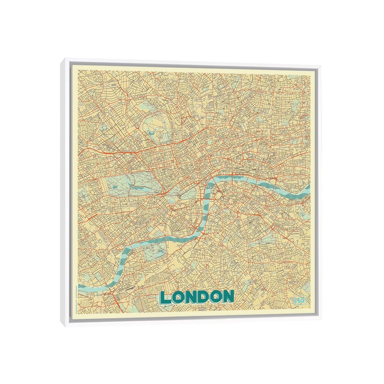 iCanvas "London Retro Urban Blueprint Map" by Hubert Roguski Framed Canvas Print