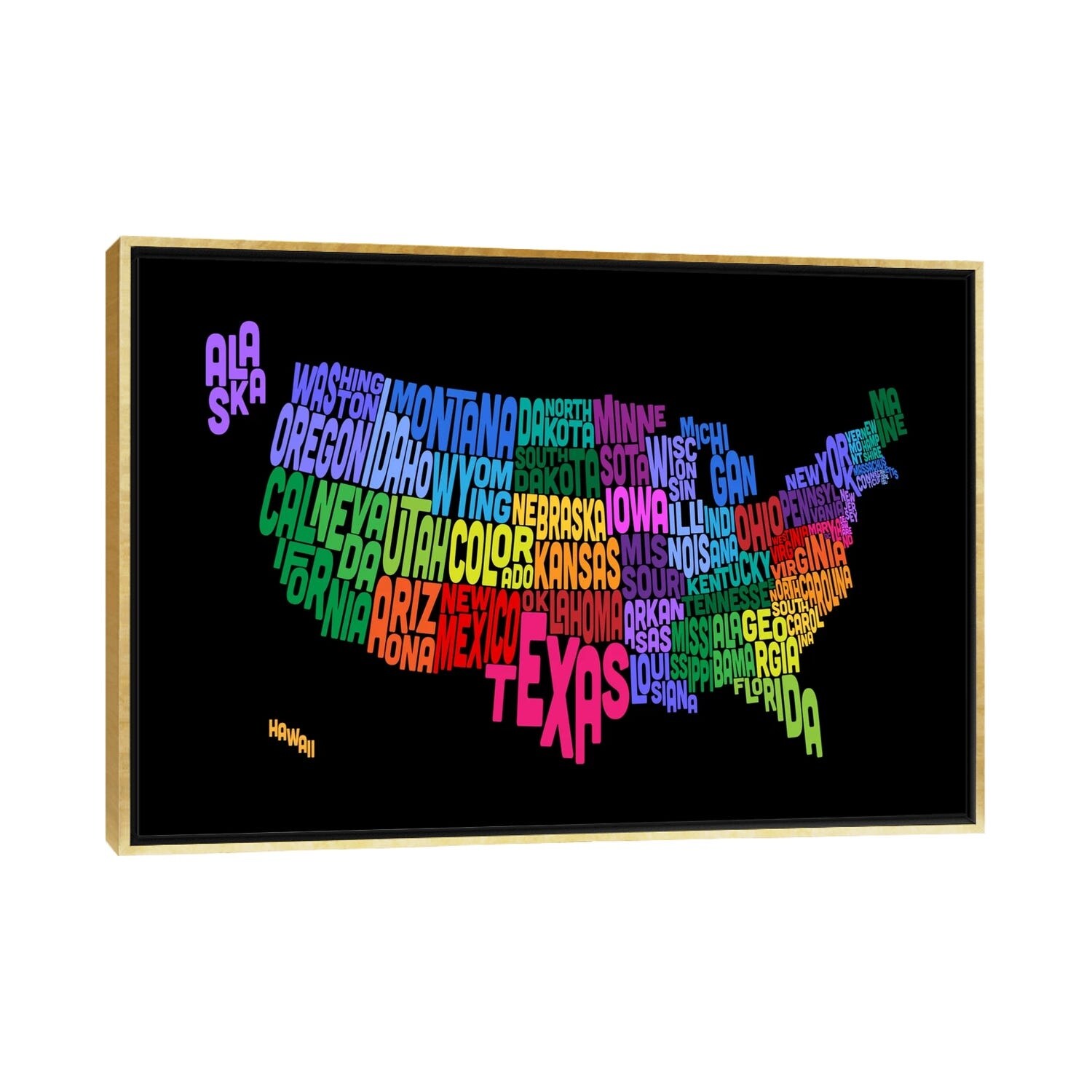 iCanvas "USA (States) Typographic Map III" by Michael Tompsett Framed