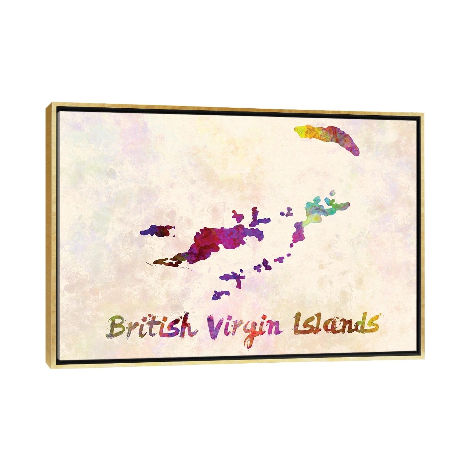 iCanvas "British Virgin Islands Map in Watercolor" by Paul Rommer Framed Canvas Print