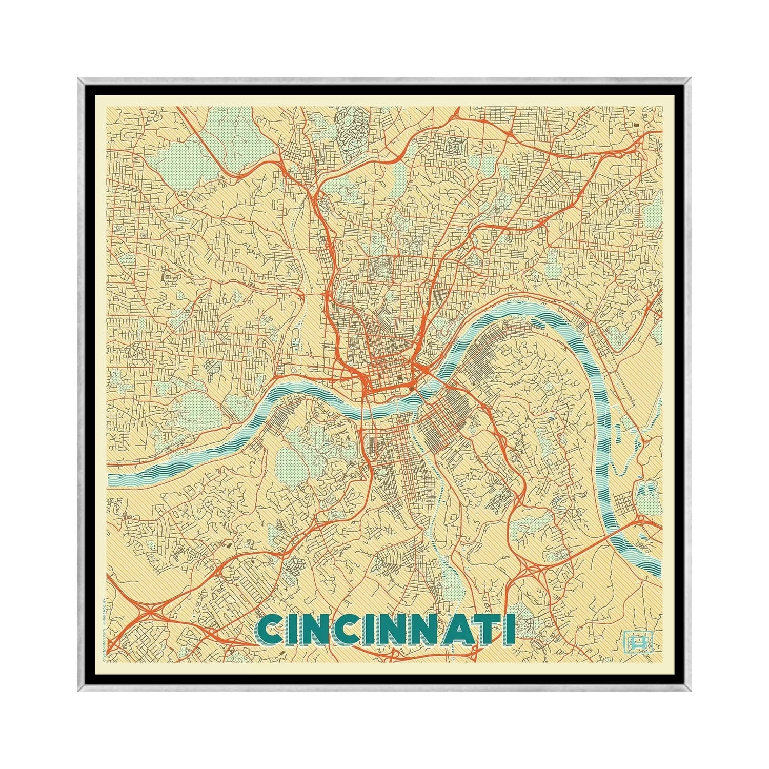 iCanvas "Cincinnati Retro Urban Blueprint Map" by Hubert Roguski Framed