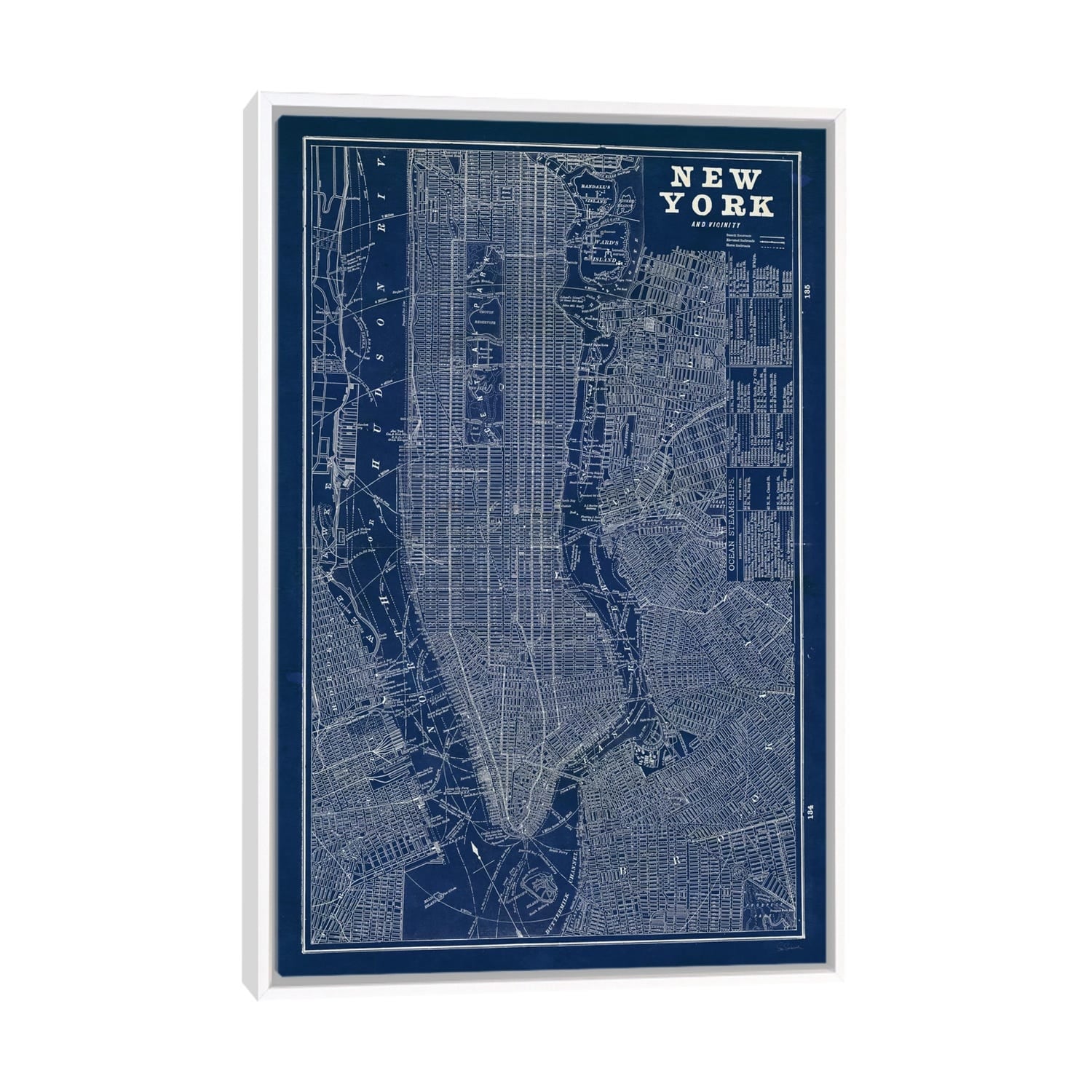 iCanvas "Blueprint Map New York " by Sue Schlabach Framed Canvas Print
