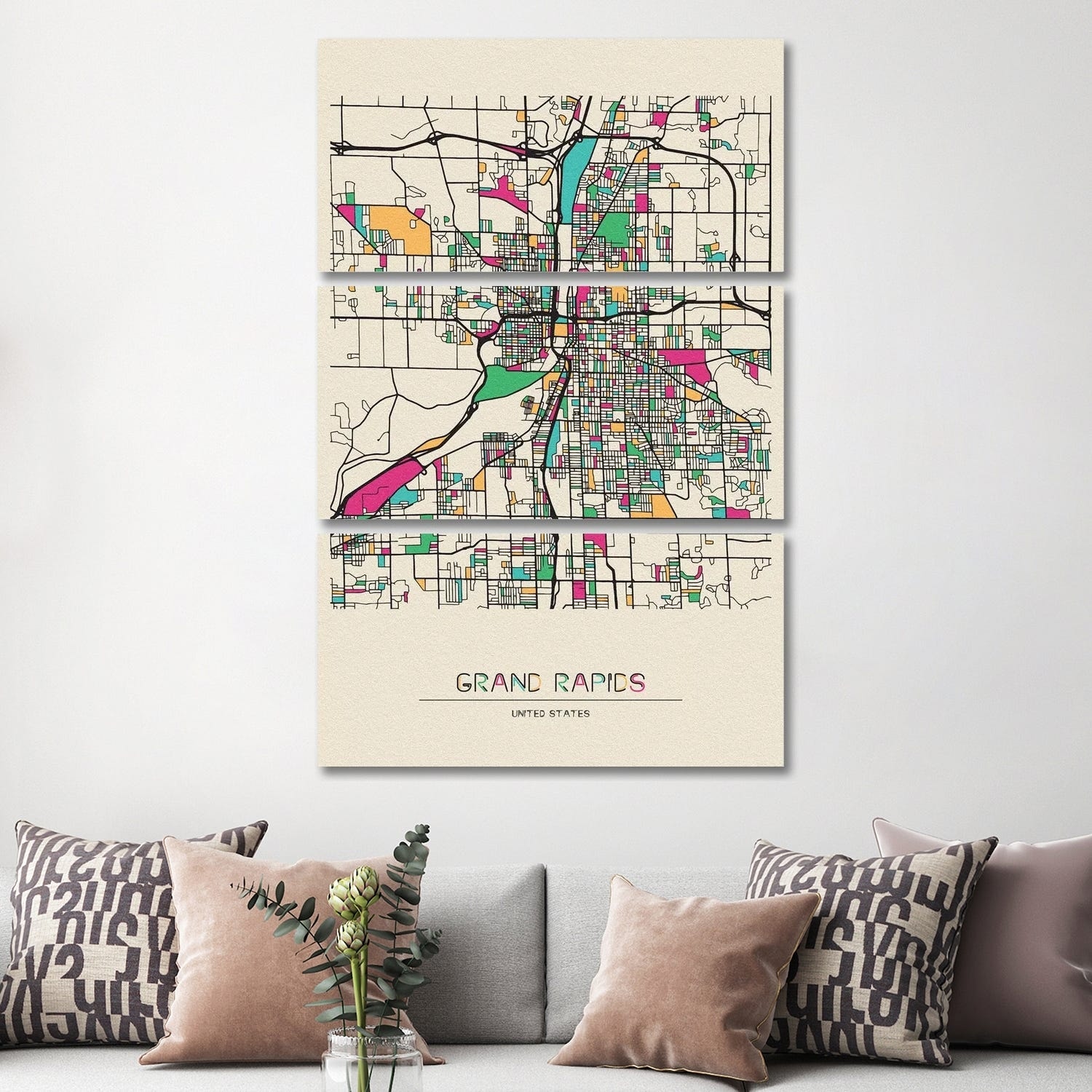iCanvas "Grand Rapids, Michigan Map" by Ayse Deniz Akerman 3-Piece Canvas Wall Art Set