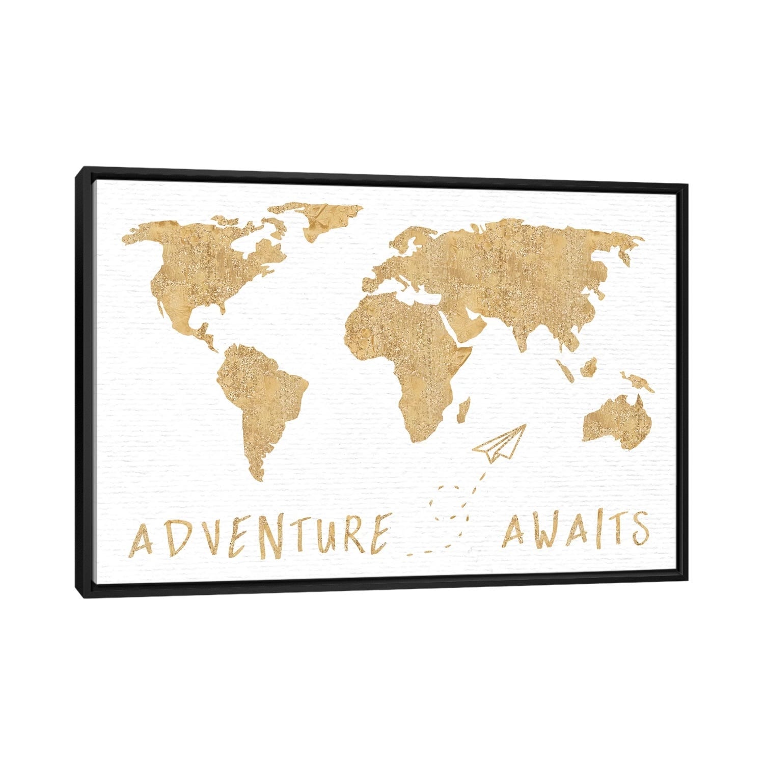 iCanvas "Adventure Awaits Map Metallic Gold" by Nature Magick Framed