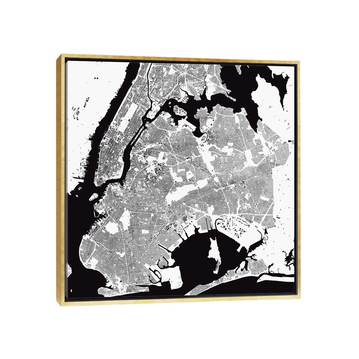 iCanvas "New York City Urban Map (White)" by Urbanmap Framed Canvas Print
