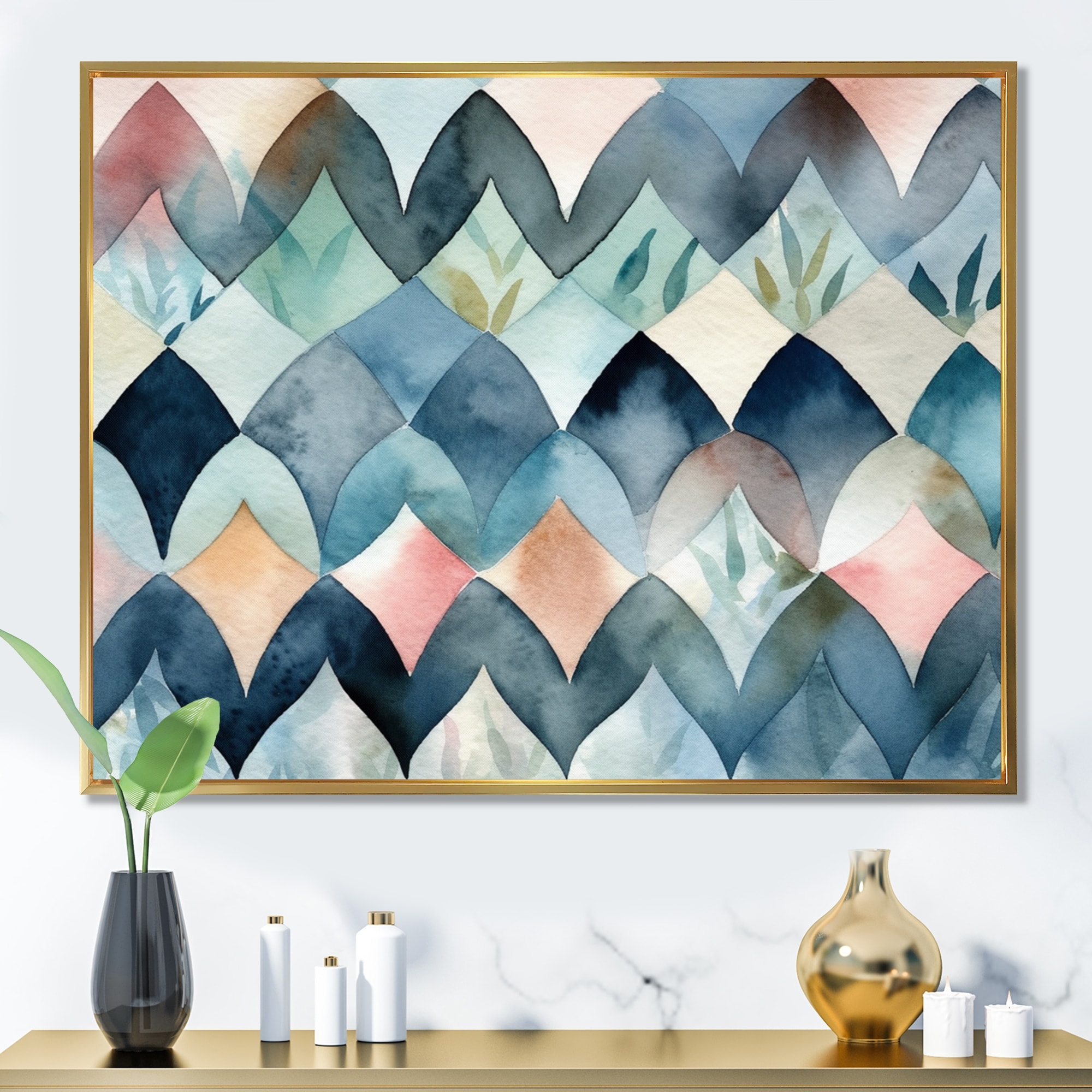 Designart "Blue Abstracted Mapping of Forms V" Modern Geometric Framed Canvas Art Print