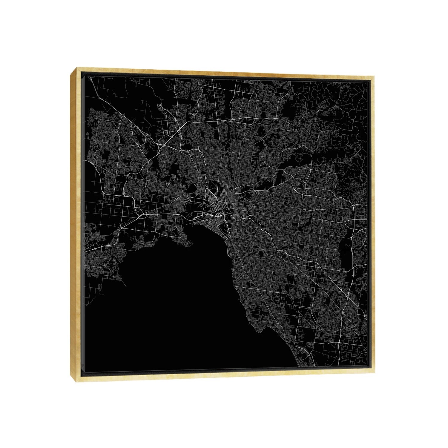 iCanvas "Melbourne Urban Roadway Map (Black)" by Urbanmap Framed Canvas Print