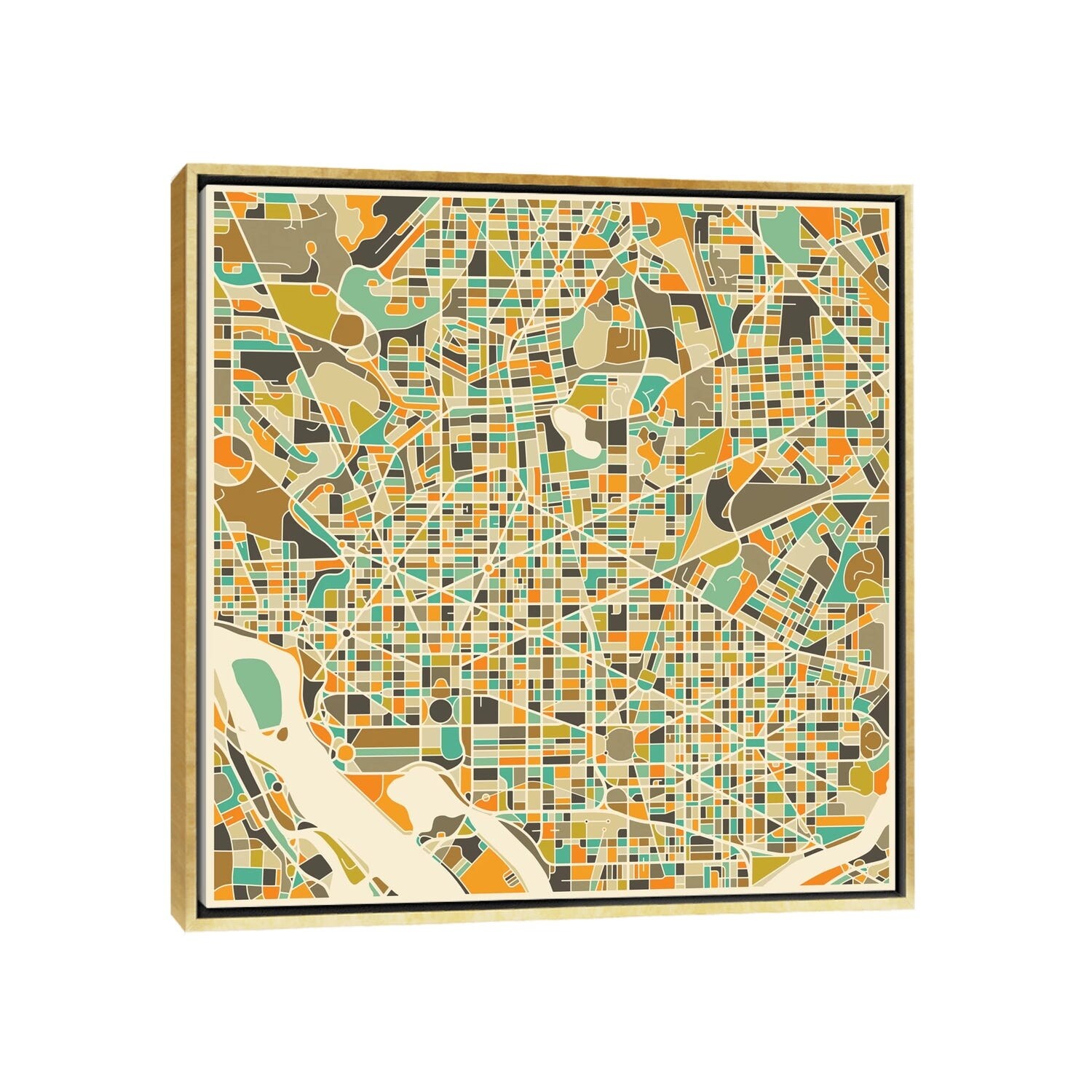 iCanvas "Abstract City Map of Washington" by Jazzberry Blue Framed Canvas Print