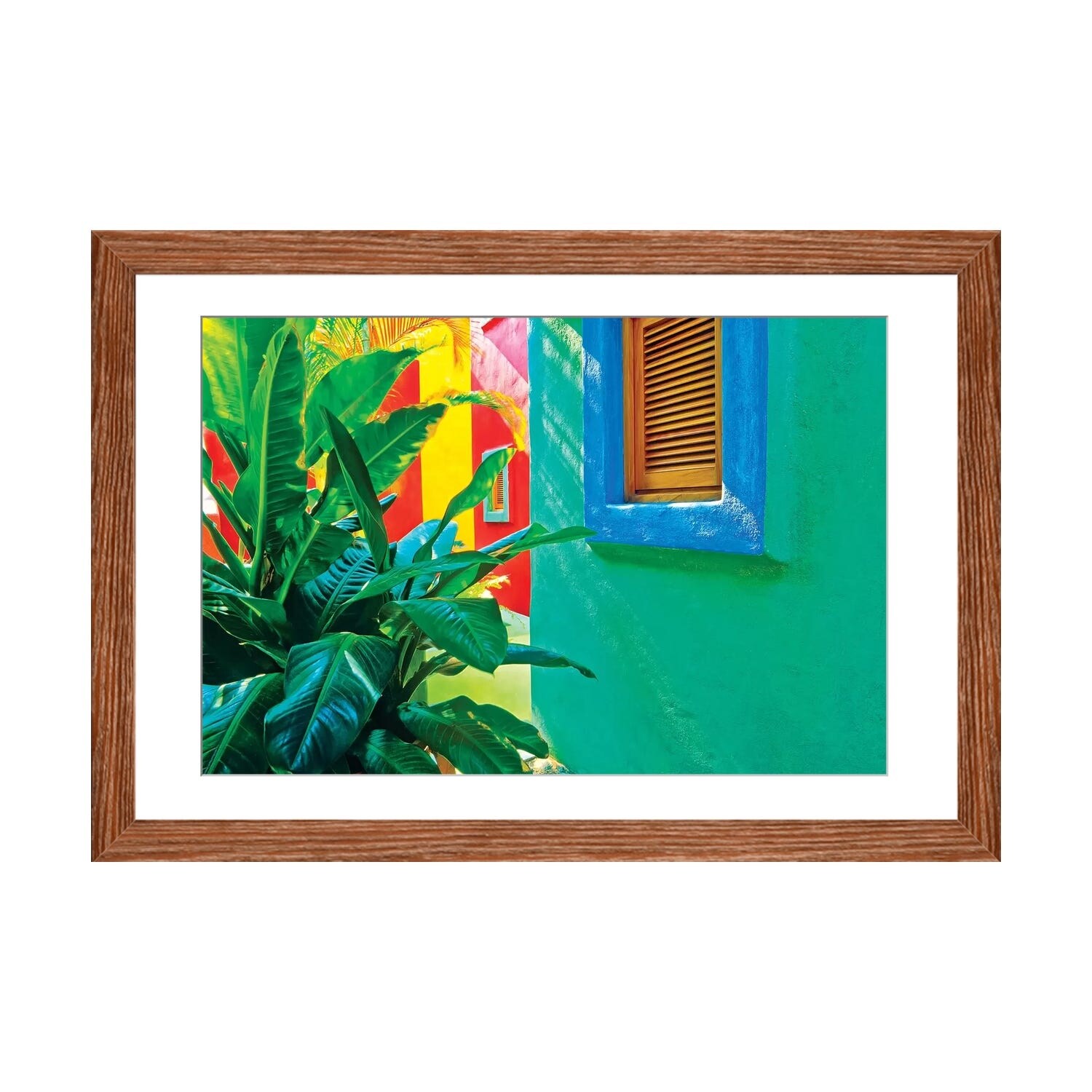 iCanvas "Mexico. Plant against colorful wall. " by Jaynes Gallery Framed