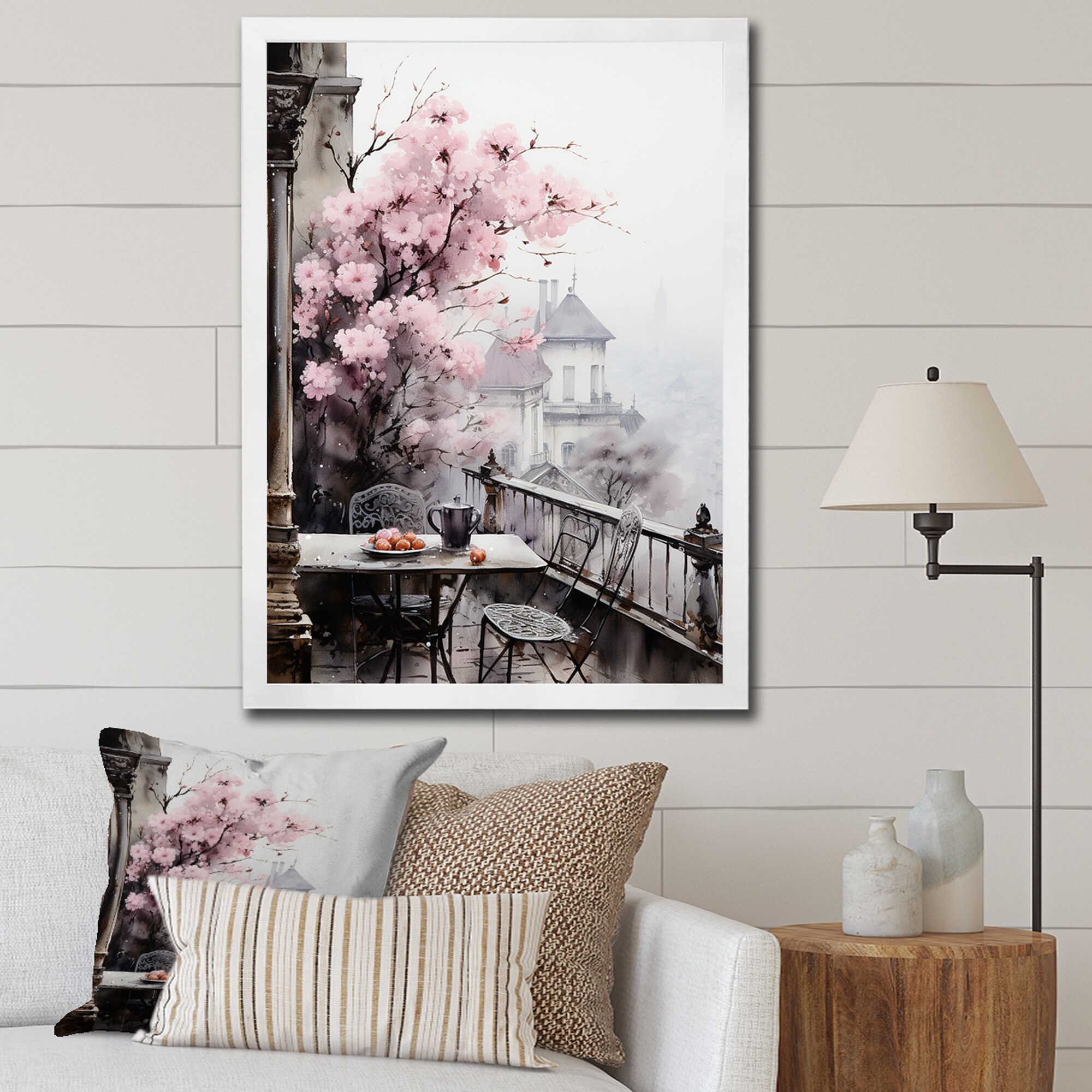 Designart "Pink Paris Montmartre Mist" City Paris Framed Canvas Wall Art