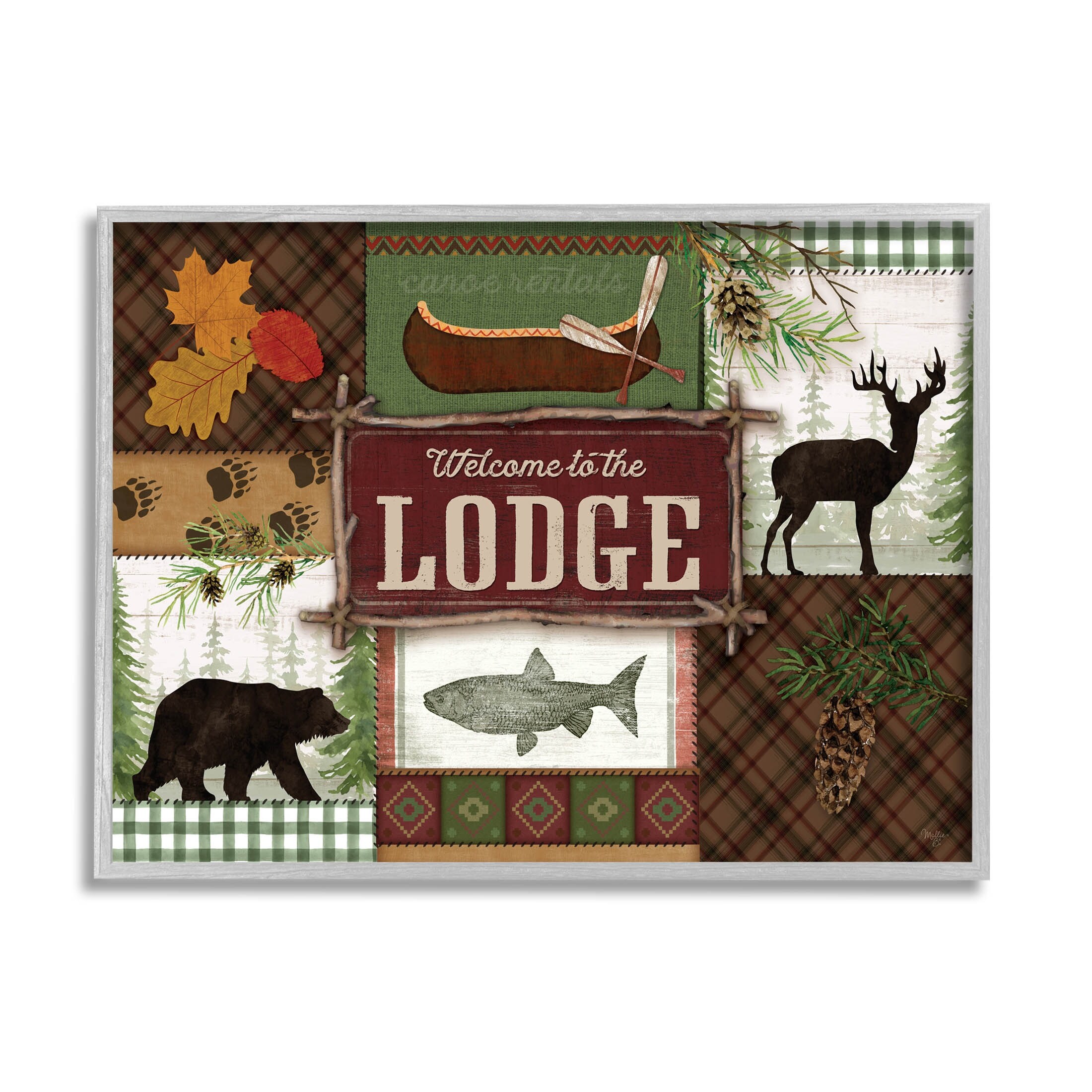 Stupell Welcome Lodge Plaid Wildlife Sign Framed Giclee Art by Mollie B.