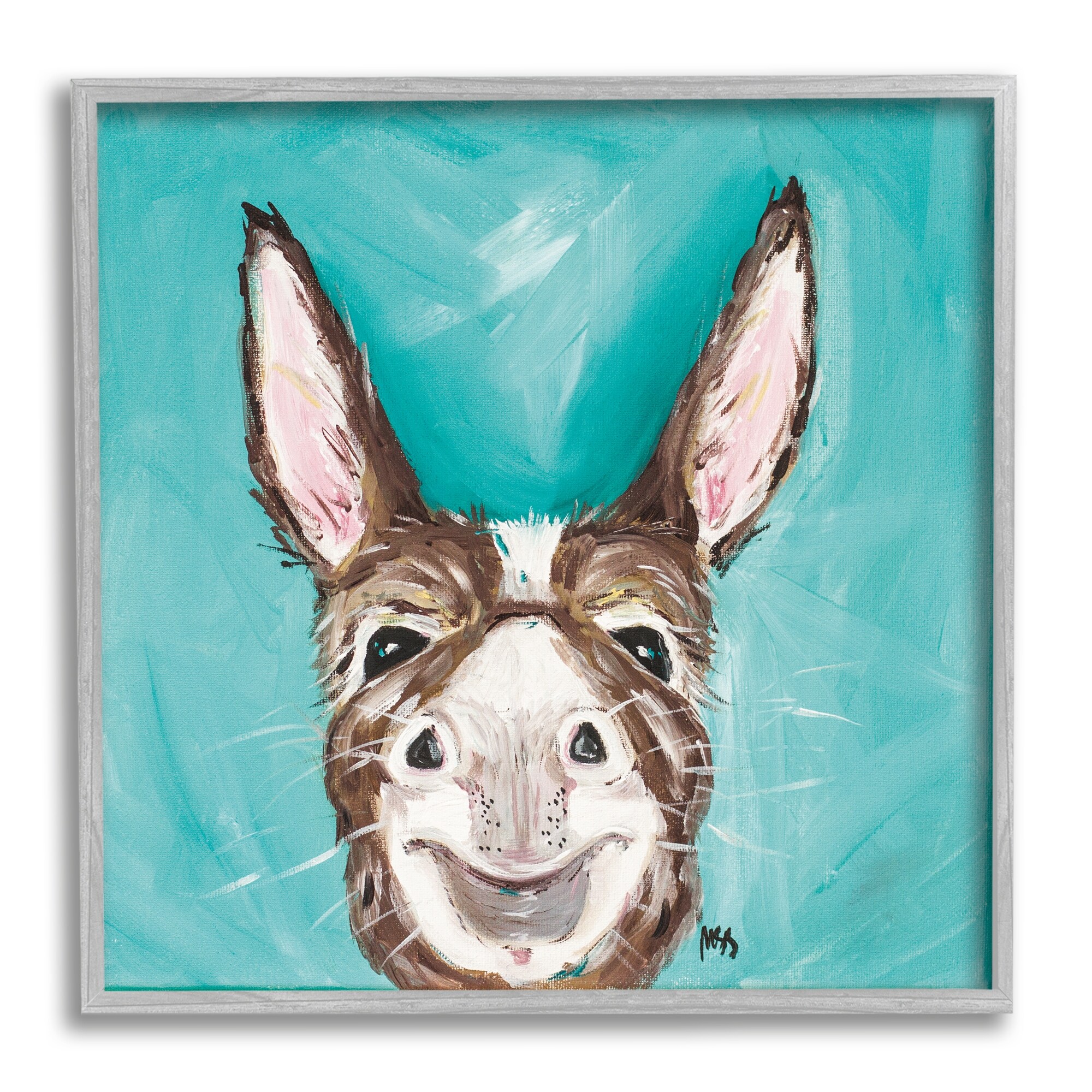Stupell Industries Silly Smiling Donkey Bold Turquoise Thick Brushstrokes Framed Wall Art, Design by Molly Susan Strong