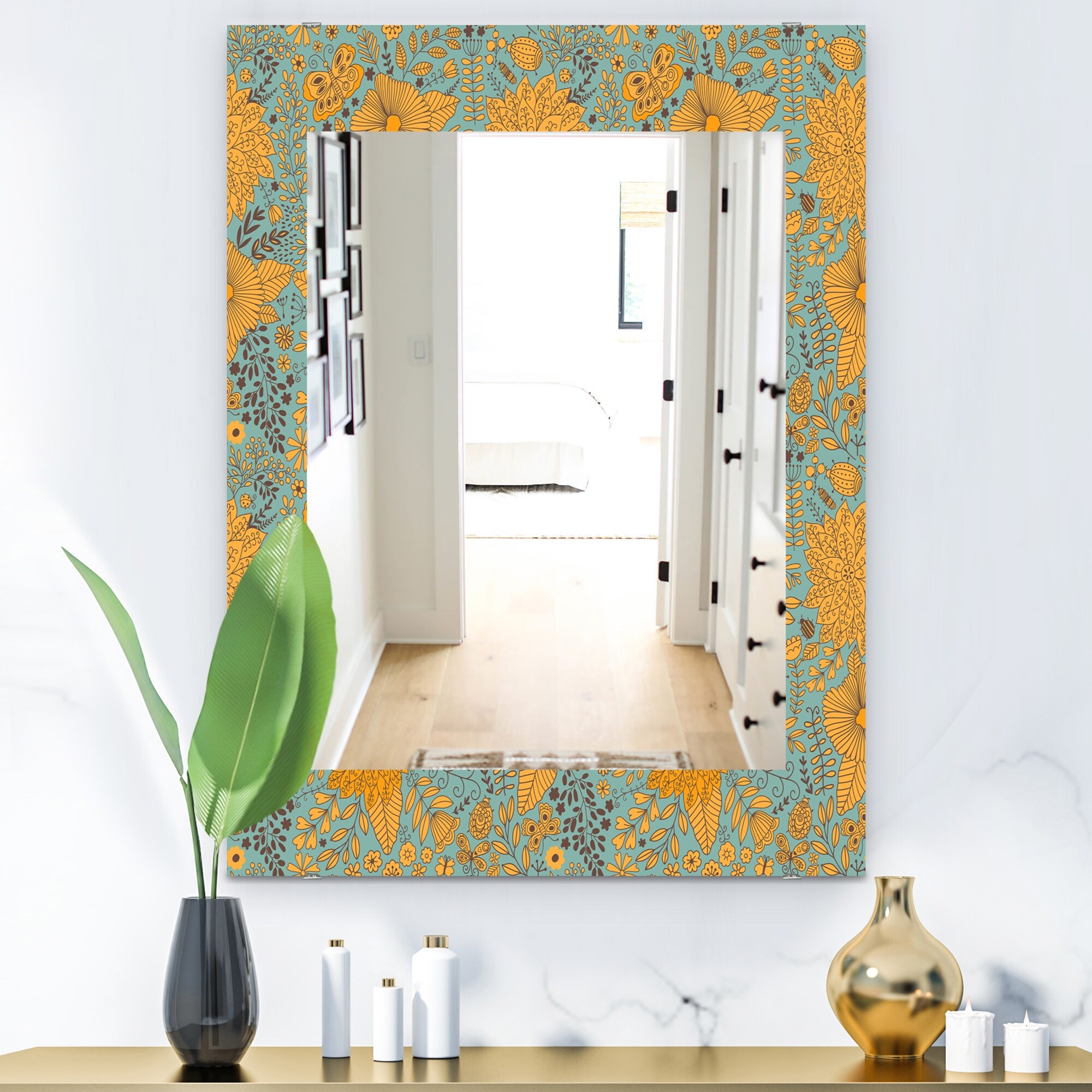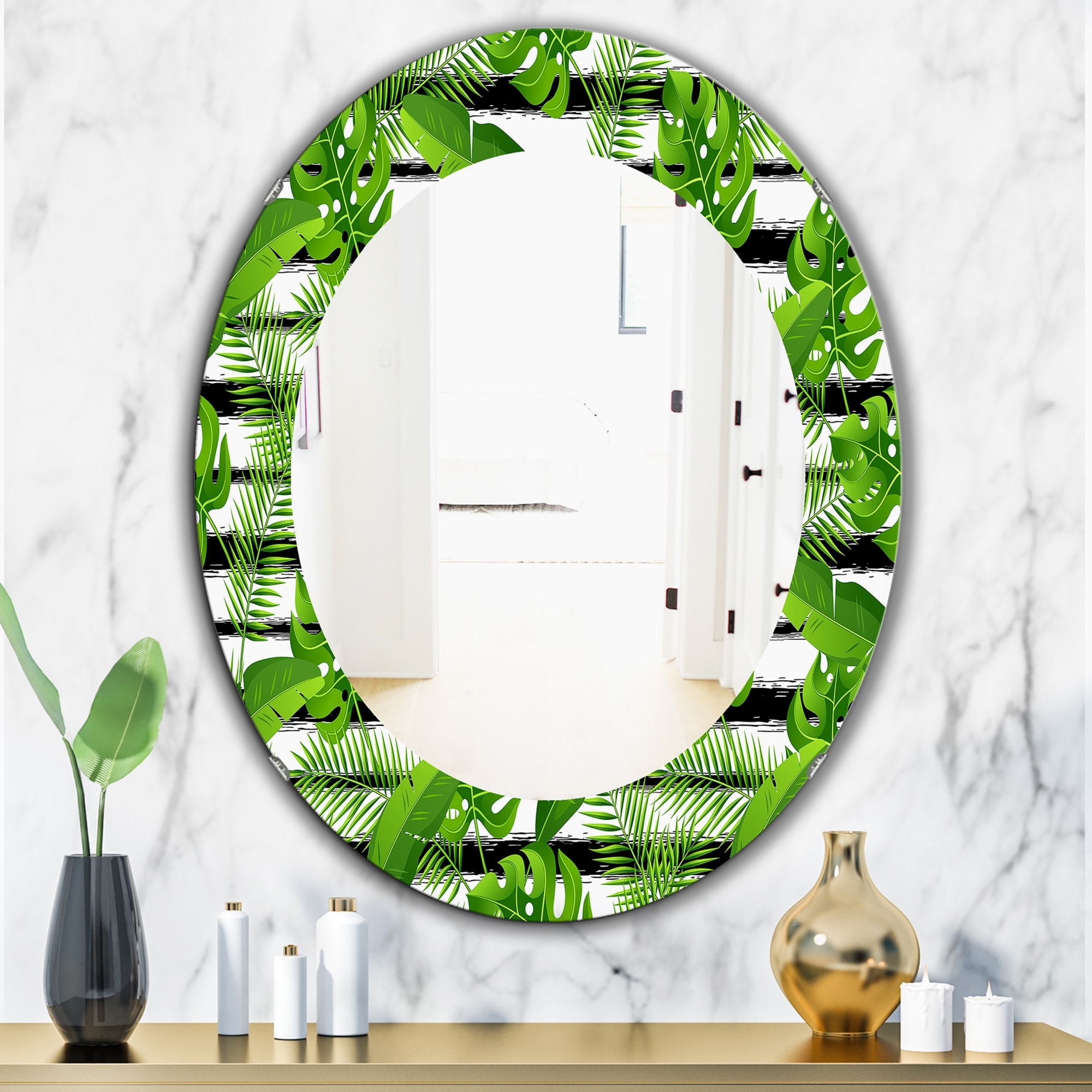 Designart 'Tropical Mood Foliage 24' Bohemian and Eclectic Mirror - Printed Wall Mirror