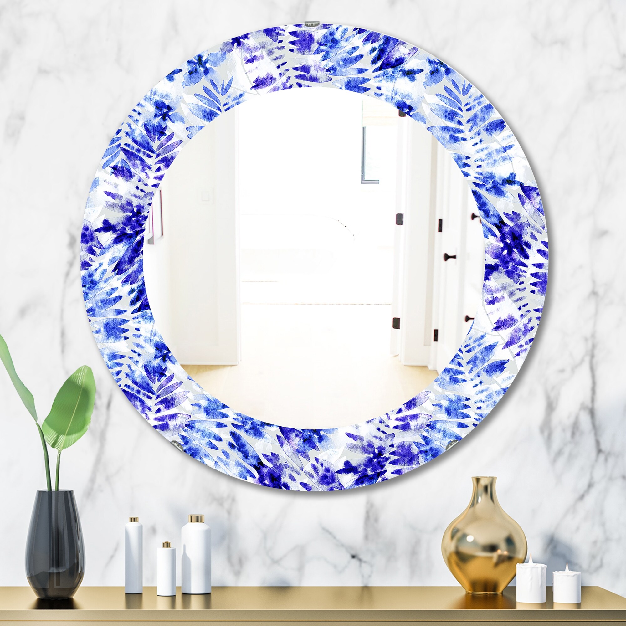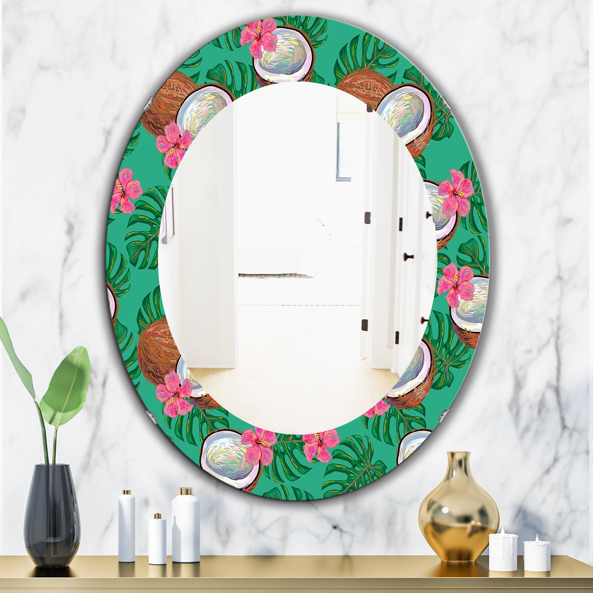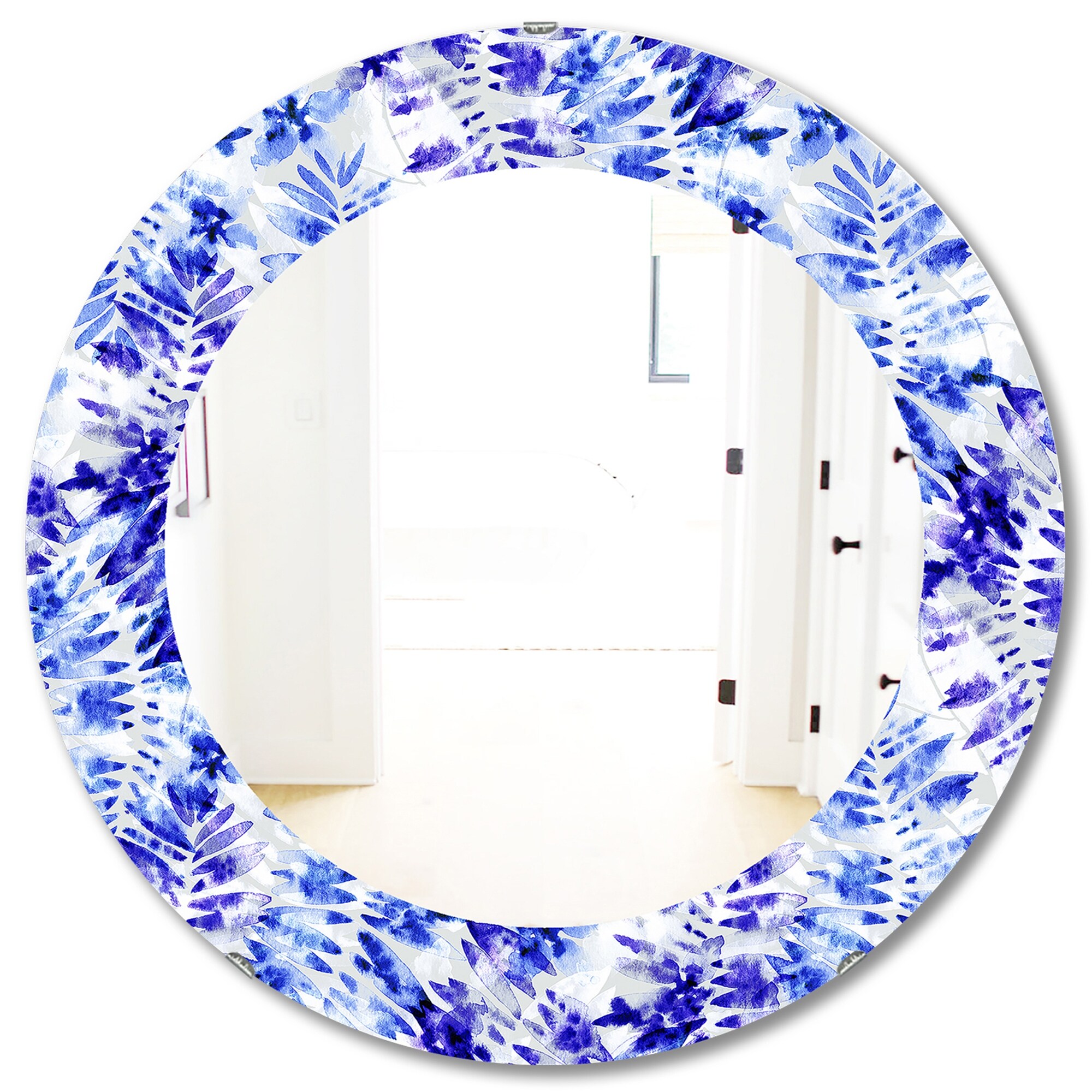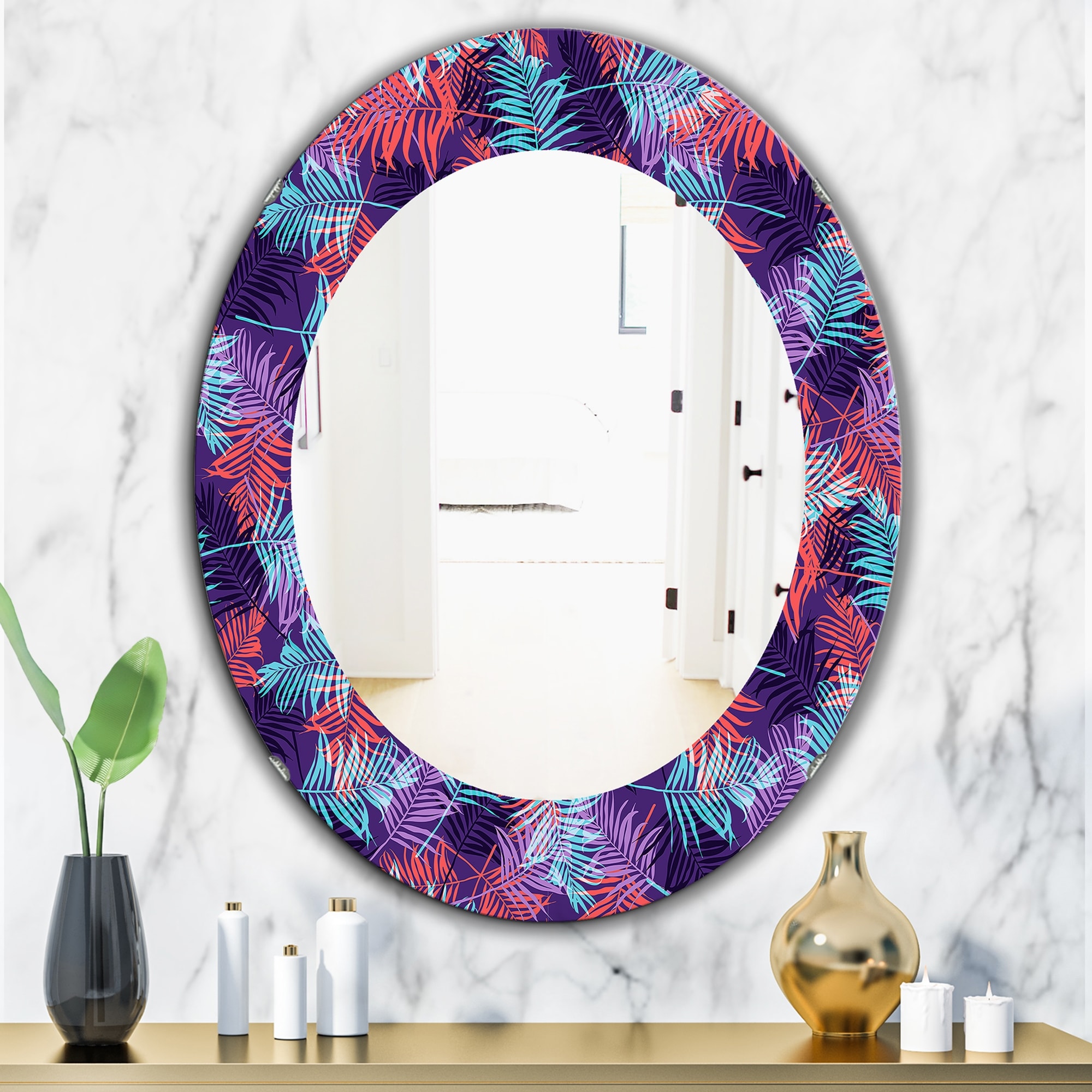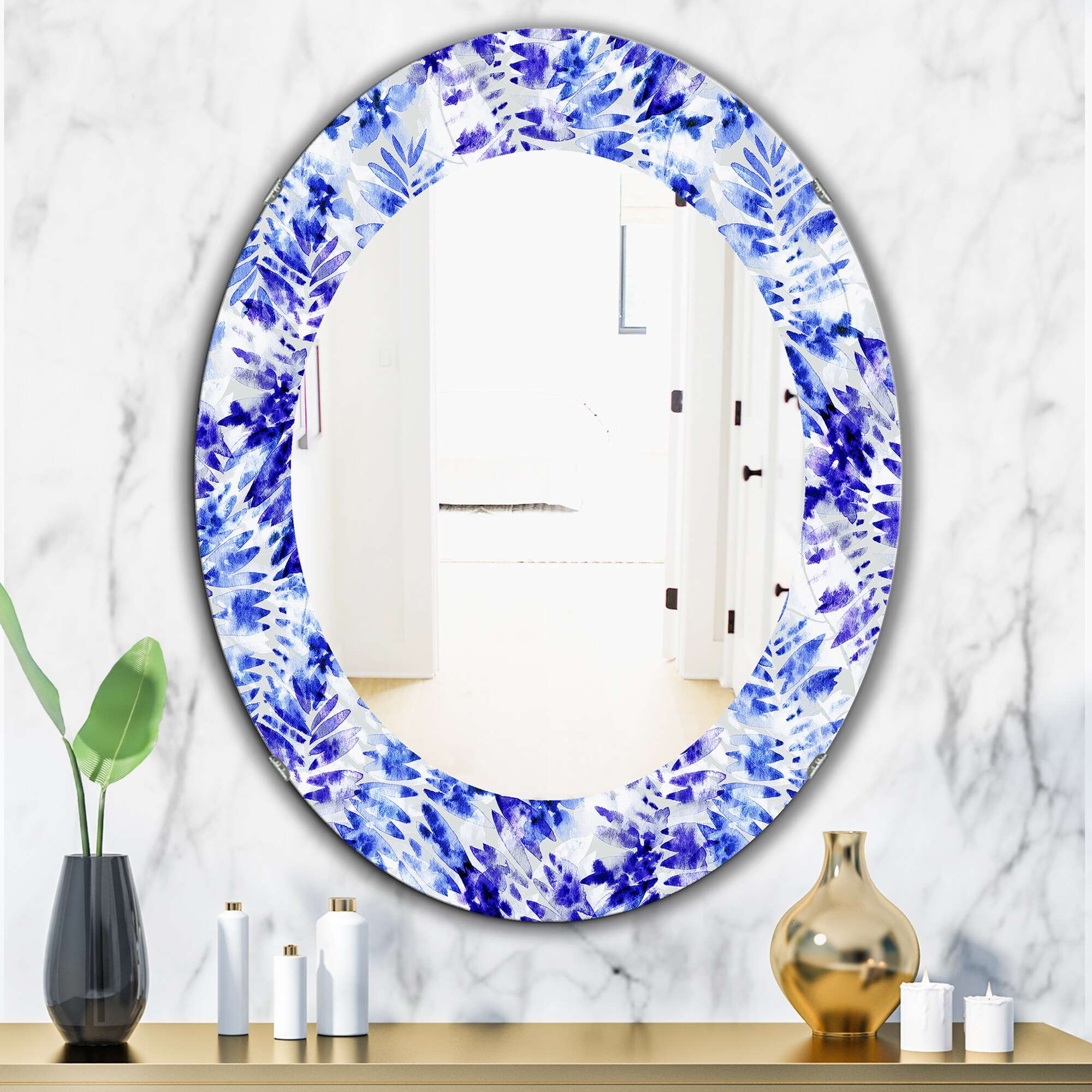 Designart 'Tropical Mood Blue 6' Printed Bohemian and Eclectic Oval or Round Wall Mirror