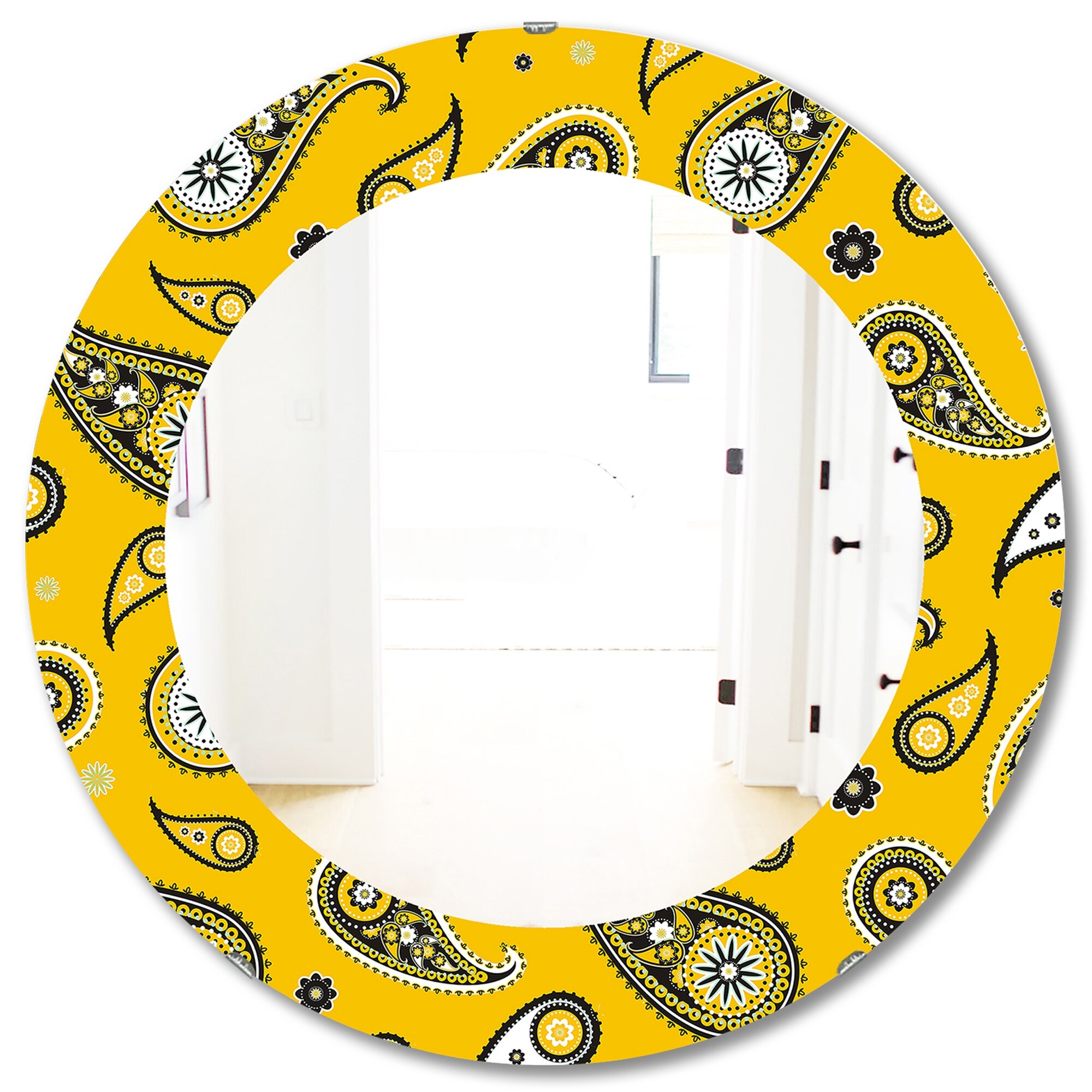 Designart 'Yellow Moods 7' Mid-Century Mirror - Printed Wall Mirror