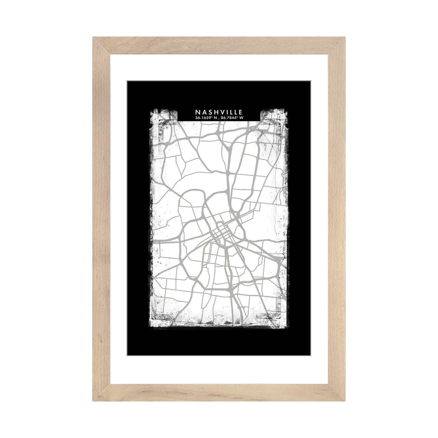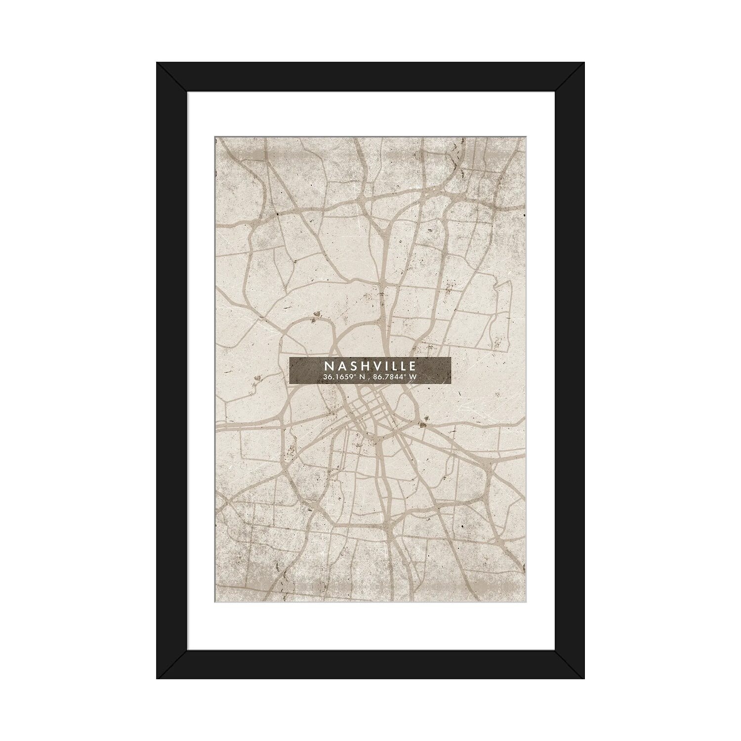 iCanvas "Nashville City Map Black White Grey Style" by WallDecorAddict