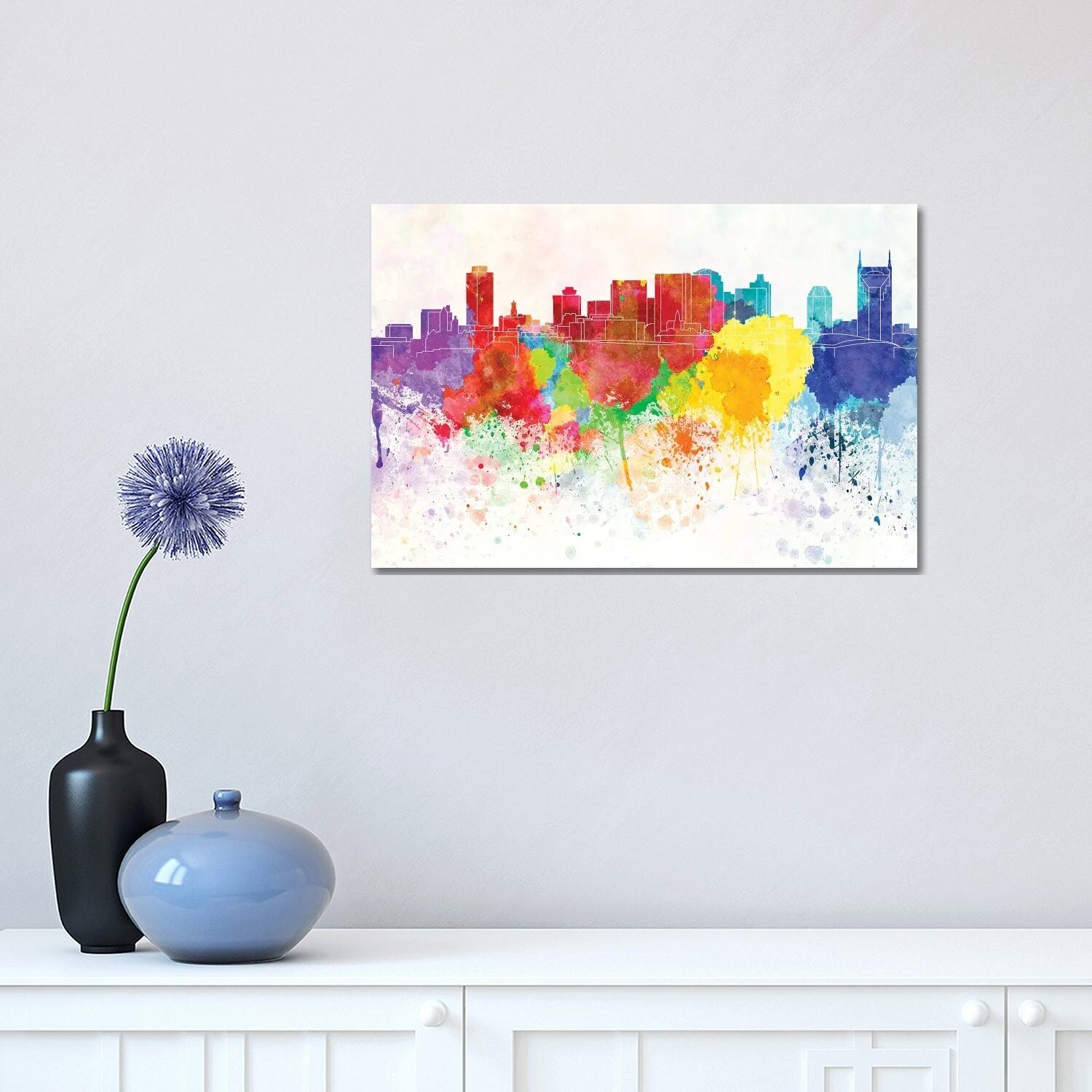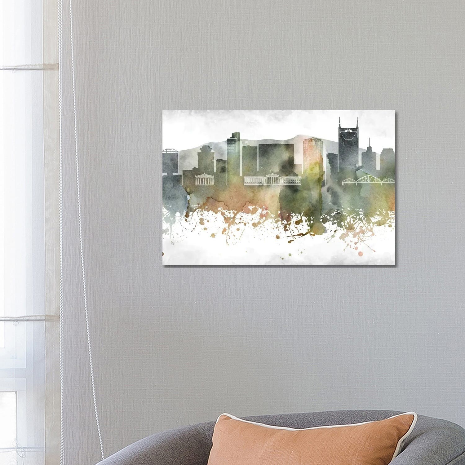 iCanvas "Nashville Skyline in Watercolor Background" by Paul Rommer Canvas Print