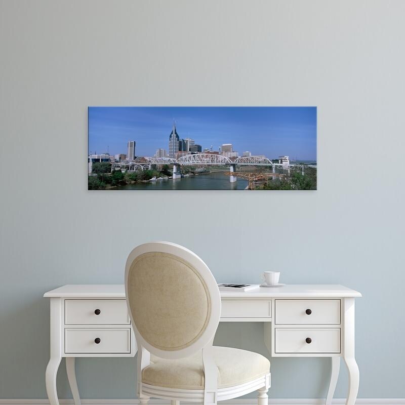 Easy Art Prints Panoramic Image 'Panoramic view of bridge over Cumberland River and Nashville Skyline, TN' Canvas Art